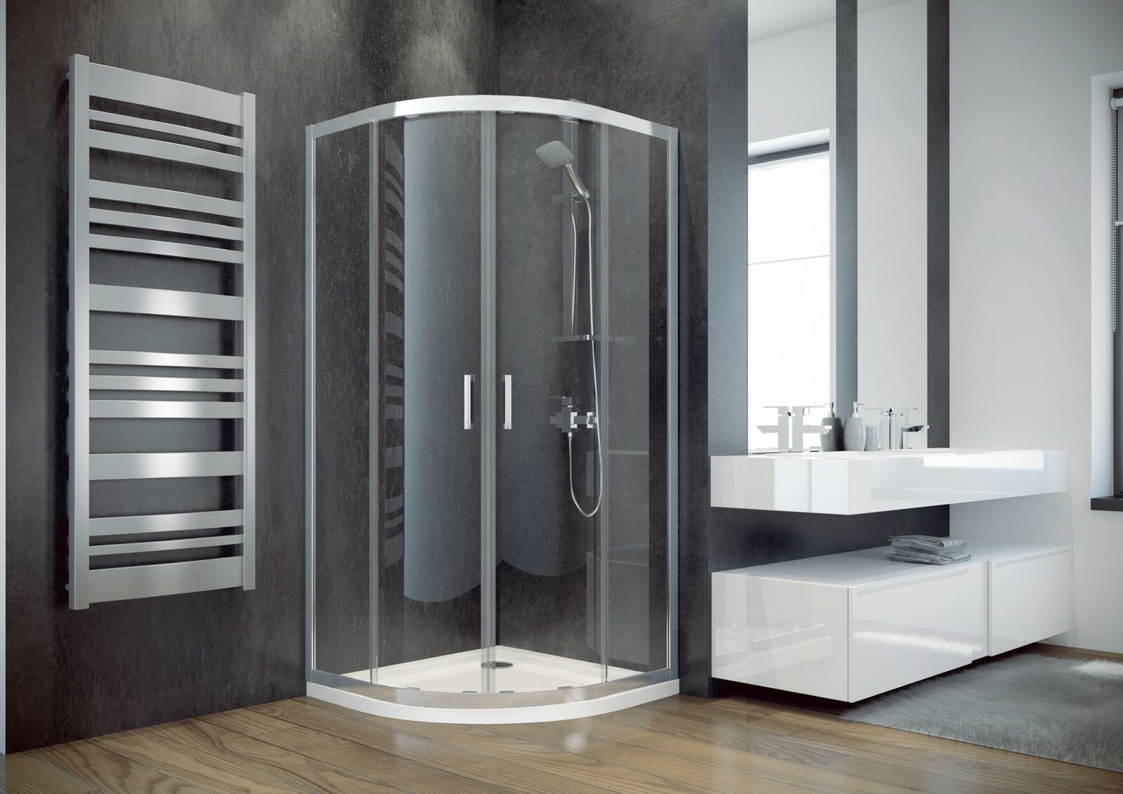 Exclusieve douchecabine kwartcirkel hoekdouche douchewand glas