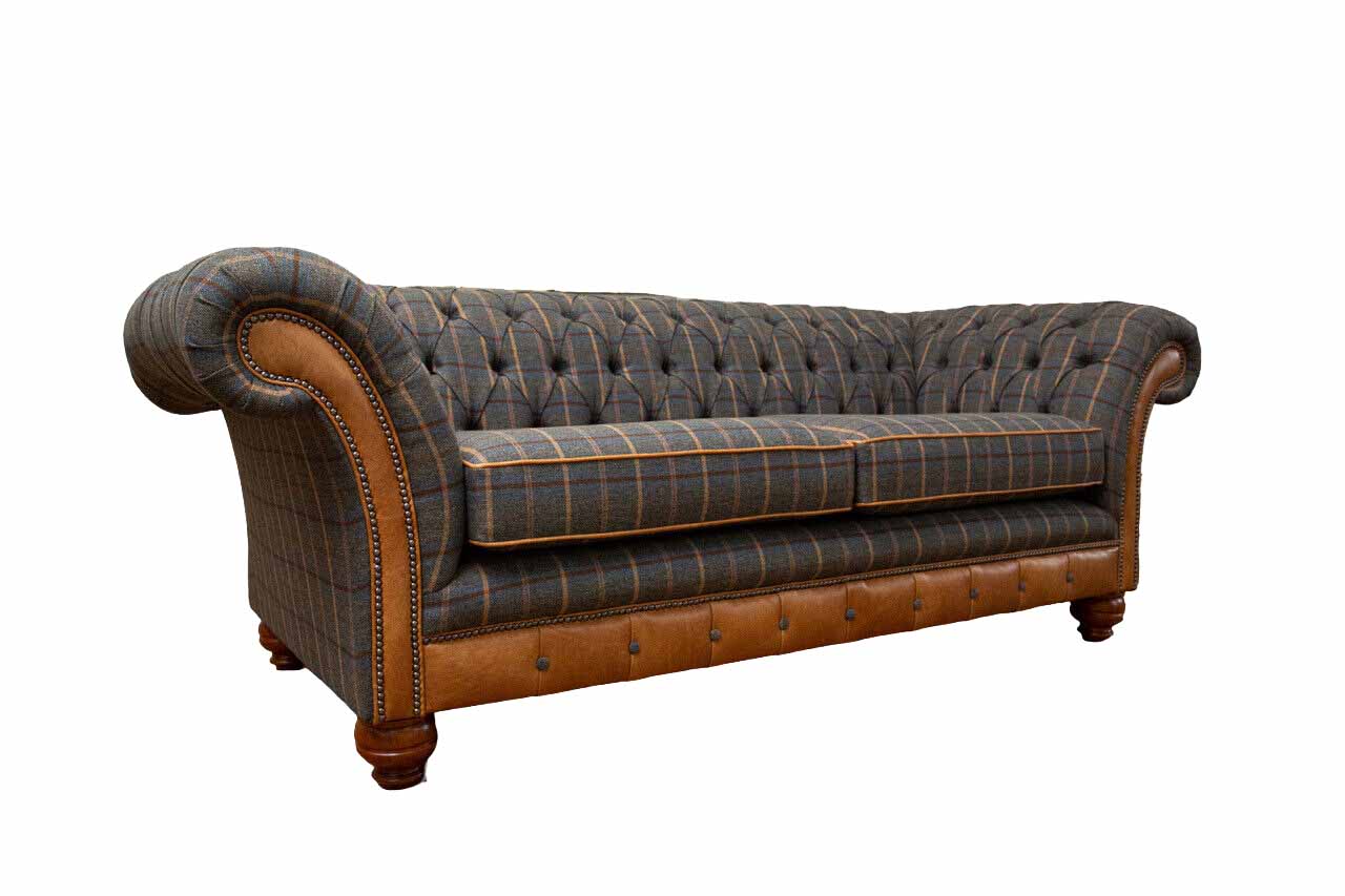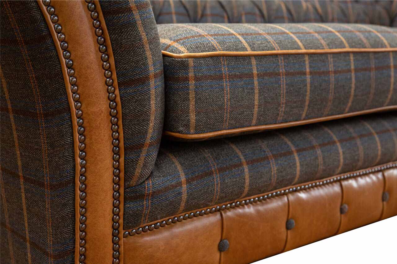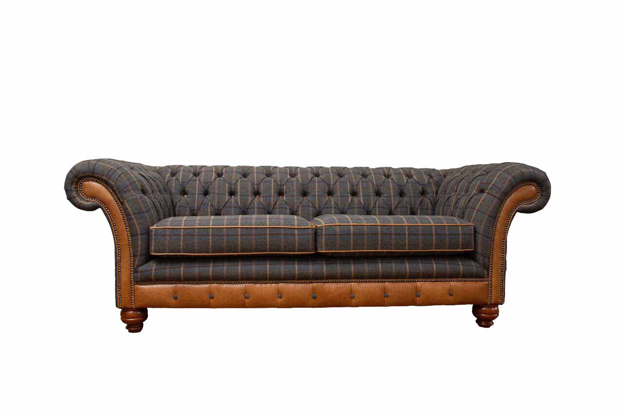 Driepersoonsbank, gestoffeerde bank, designbank, Chesterfield-bank