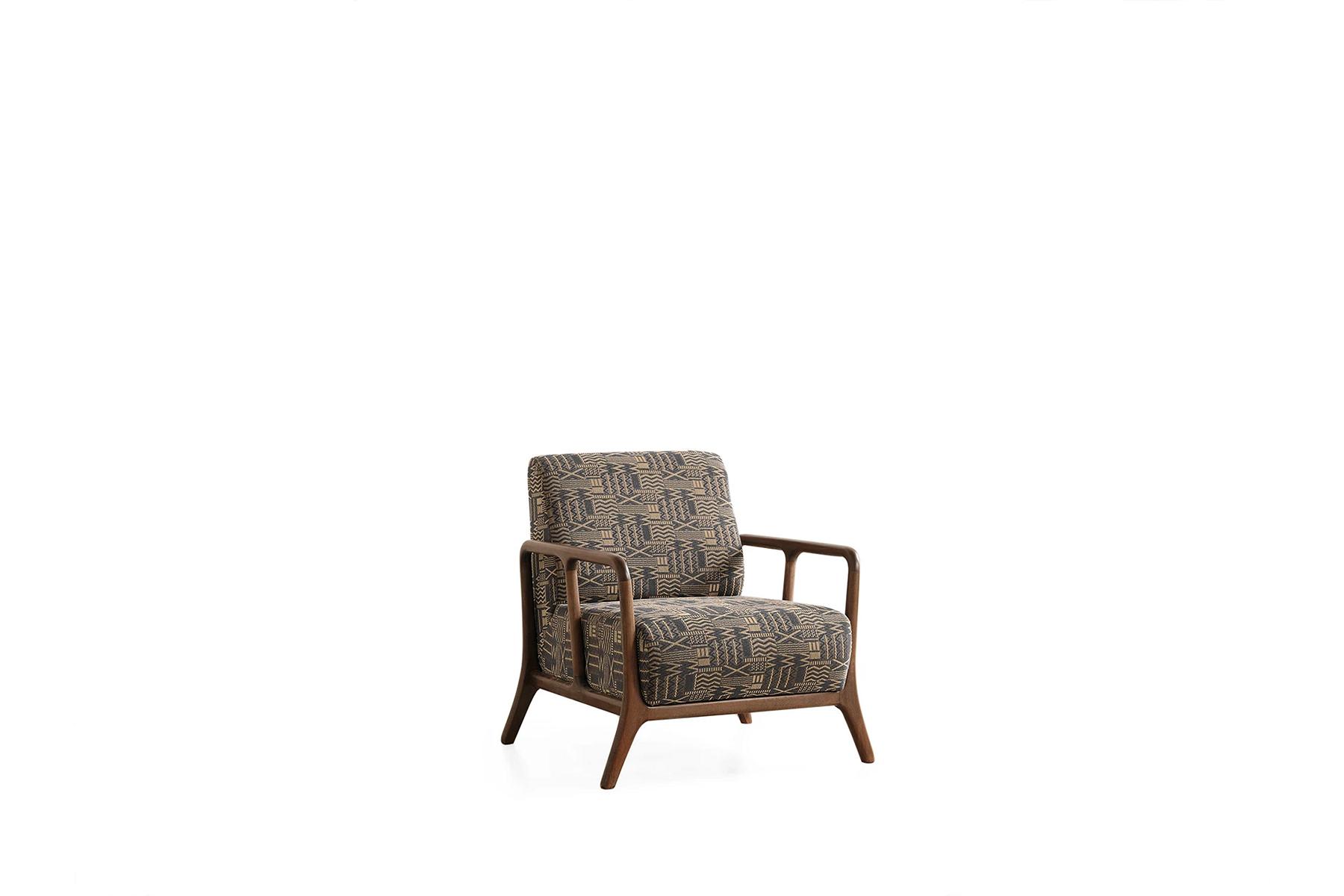 De gemodelleerde fauteuil vult de set perfect aan en biedt een comfortabele enkele zitplaats. Met zijn compacte afmetingen past hij in elke hoek van de woonkamer en biedt toch maximaal comfort.