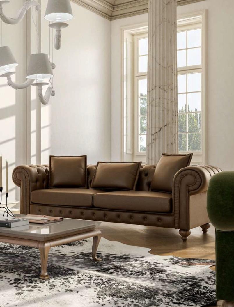 In de warme bruine kleur, zoals afgebeeld, voegt deze woonkamerbank een vleugje stijl toe aan elke moderne woonkamer. De afmetingen van ongeveer 240 x 100 x 75 cm bieden voldoende ruimte om te ontspannen en tot rust te komen. De zithoogte van 44 cm en zitdiepte van 56 cm zorgen voor een comfortabele zitervaring. Of u nu geniet van een ontspannen avondje tv kijken of gasten ontvangt, de "Bruine Luxe" driezits woonbank is de perfecte keuze voor uw huis.