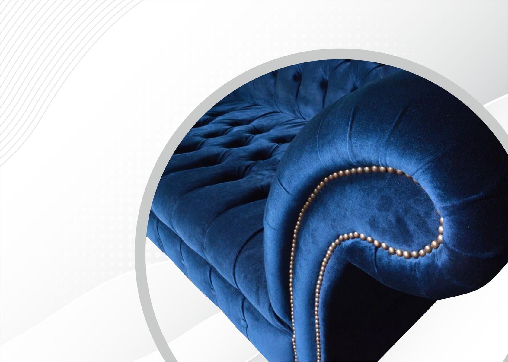 Chesterfield 3-zits Blauw Design Banken Bekleding Bankstellen Velours Stof Textiel Luxe