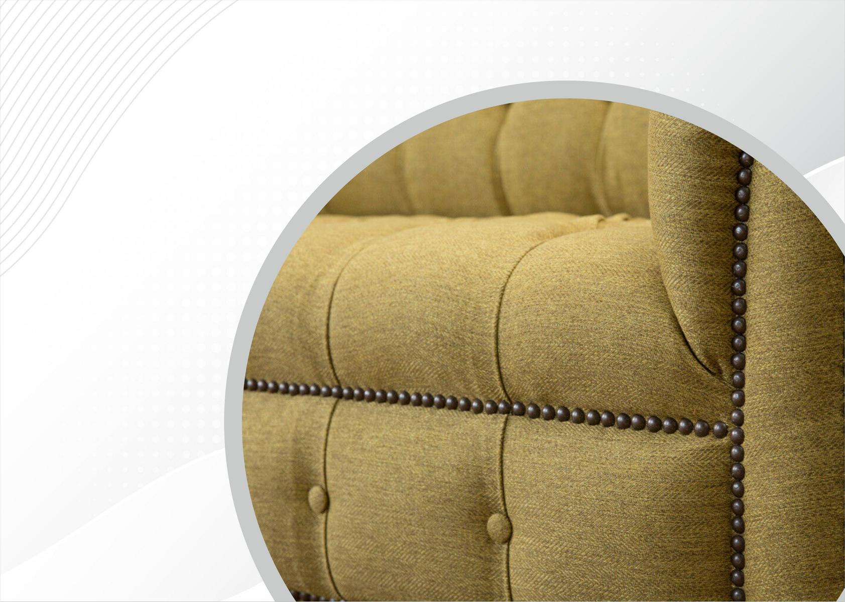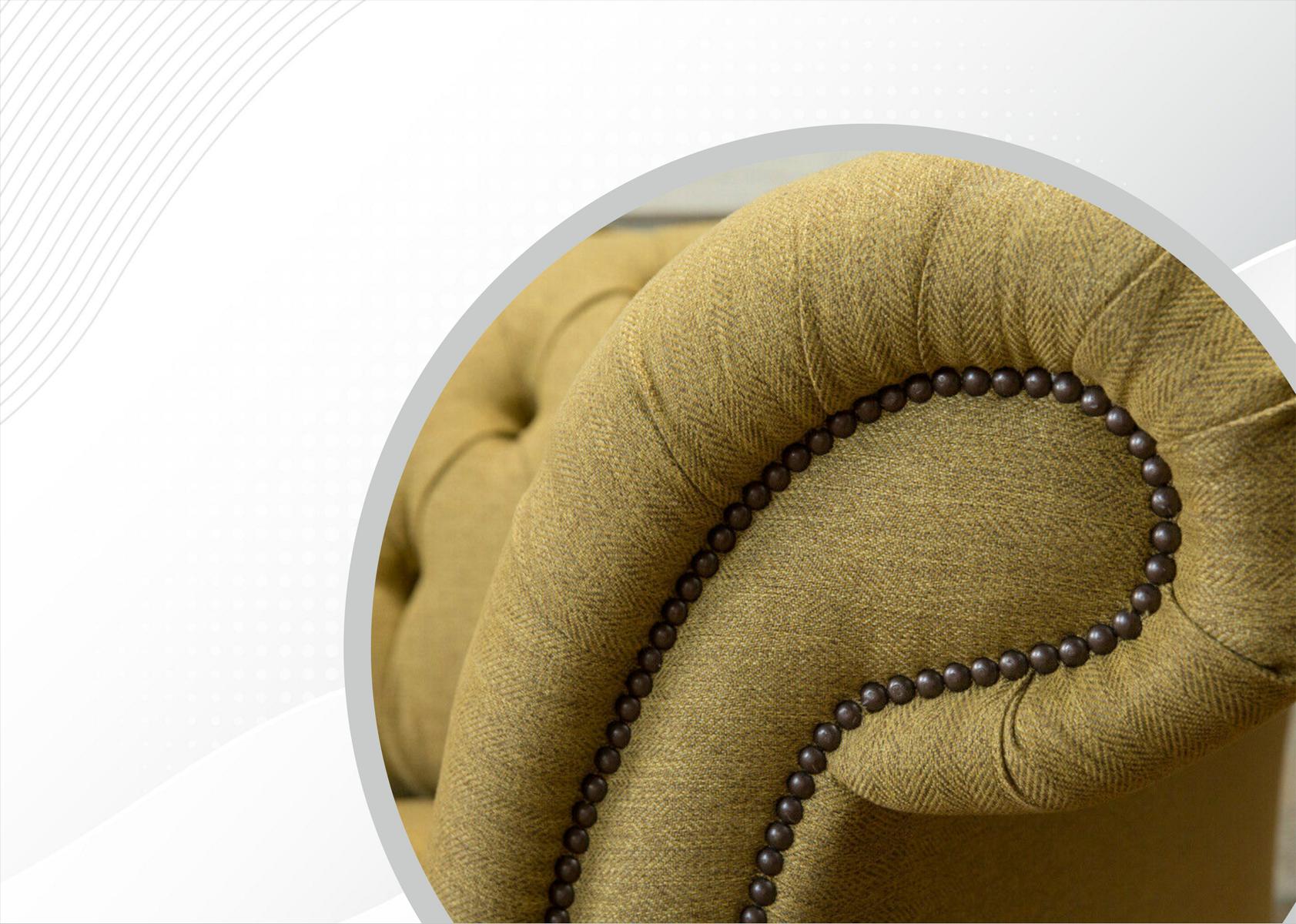 In de woonkamer zal deze bank direct in het oog springen dankzij de opvallende gele bekleding die warmte en stijl toevoegt aan de ruimte. Het duurzame textielmateriaal zorgt voor comfort en gemakkelijk onderhoud, waardoor deze bank perfect is voor dagelijks gebruik. Of je nu een filmavond met het gezin plant of gewoon wilt ontspannen met een goed boek, deze Chesterfield bank biedt de ideale plek om tot rust te komen.