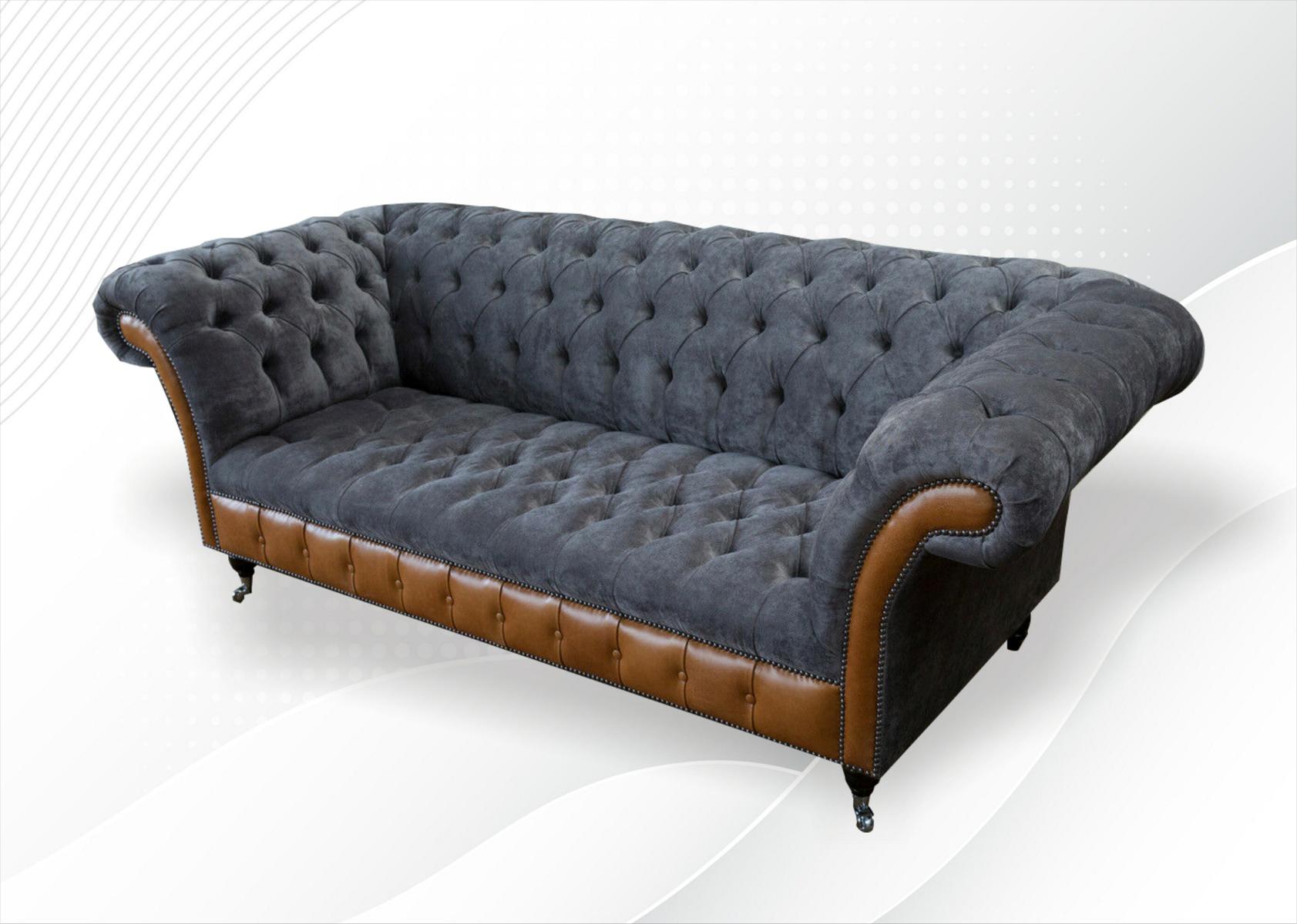 Chesterfield Bank Bank Bekleding 3 Zits Grijs Textiel Stof Grijze Banken