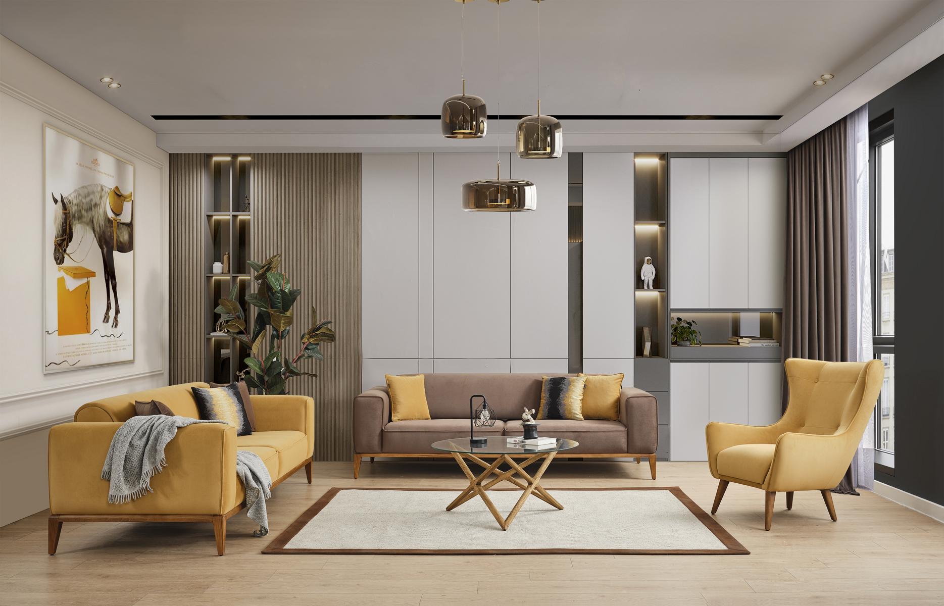 Driepersoons bankstel 3-zits bankstellen Stof Geel Woonkamer Luxe Modern Zitplaats