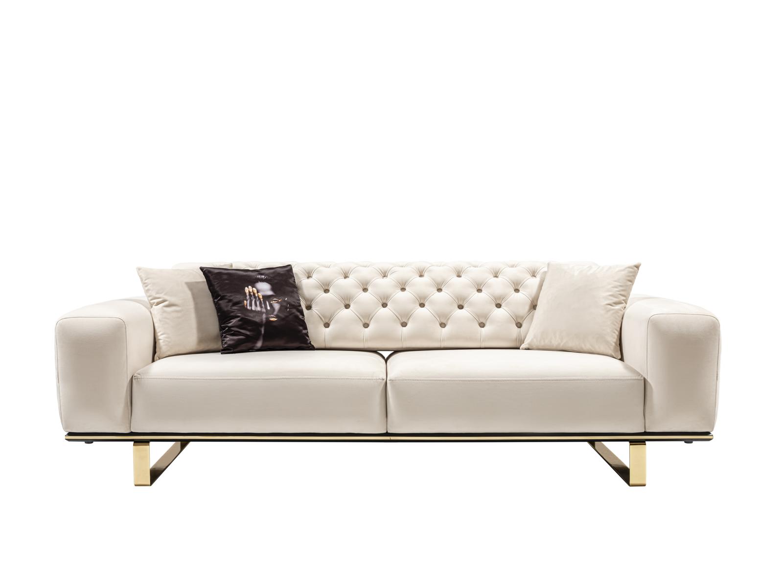 Driepersoons Chesterfield bank 3-zits bank Witte stof Woonkamer Luxe