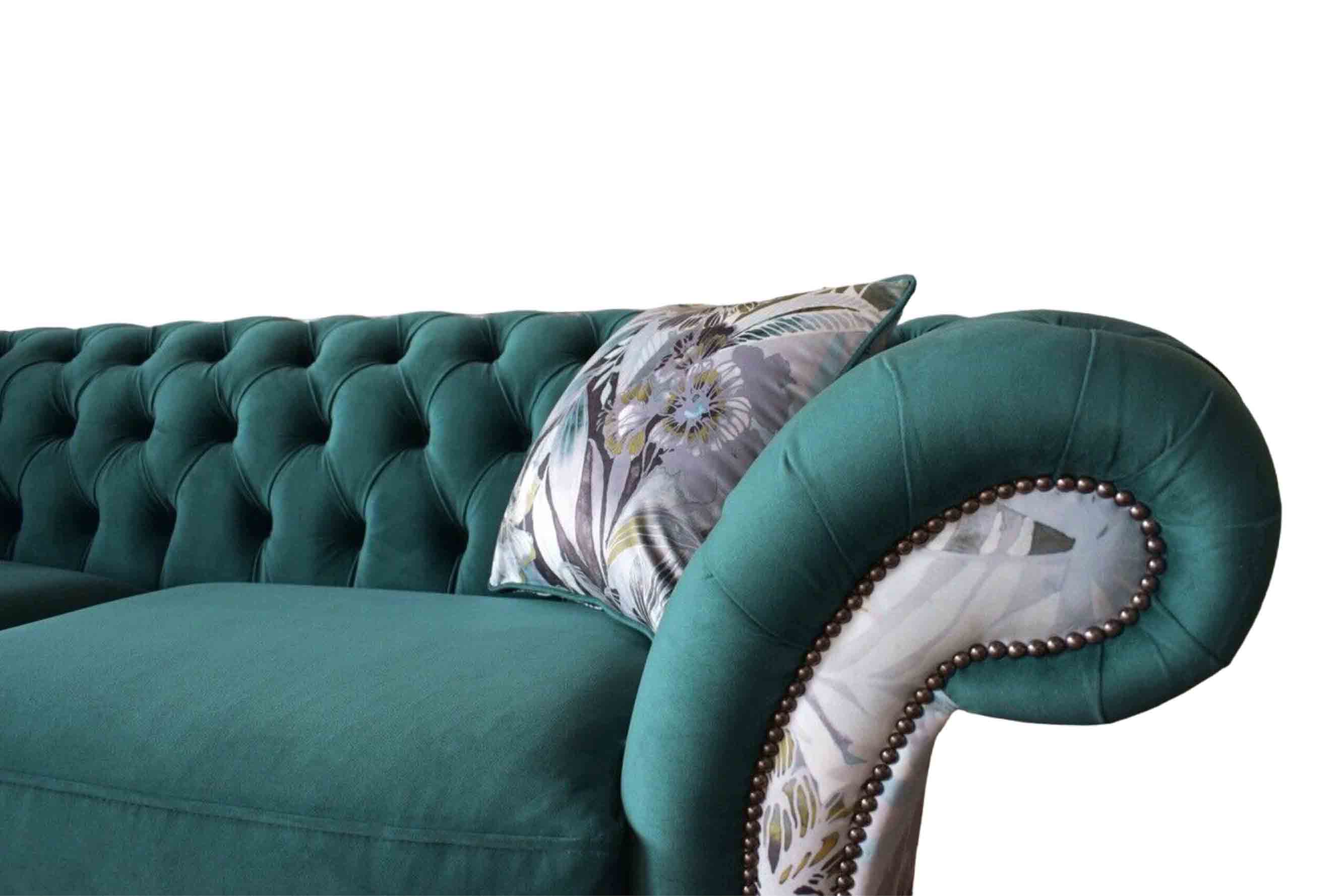 Een levendige driezitsbank van Chesterfield in een delicate smaragdkleur met bloemmotief is een luxueuze toevoeging aan elke woonruimte. Met afmetingen van ca. 230 x 80 x 90 cm biedt deze bank niet alleen comfort, maar ook stijl. De zithoogte van 42 cm en zitdiepte van 52 cm zorgen voor een aangename en ontspannen zitervaring. Het materiaal van hoogwaardig textiel zorgt voor duurzaamheid en elegantie. Optionele features zoals de bedfunctie met matras en verschillende groepen materialen om uit te kiezen, waaronder premium leer en fluweelstof, bieden keuzemogelijkheden voor een persoonlijke touch. Het natuurhouten binnenframe zorgt voor stabiliteit en langdurig gebruik.
