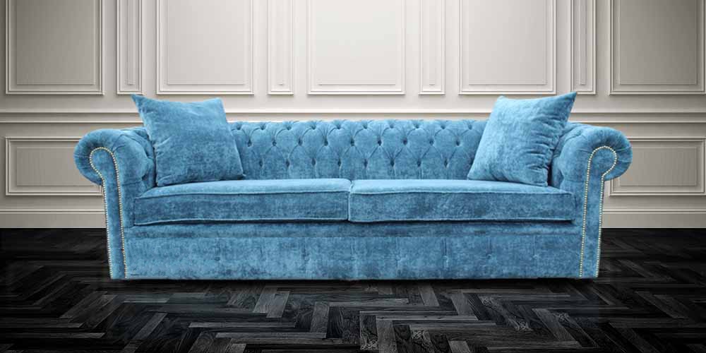 Klassieke woonkamerbank - Blauwe Chesterfield stoffen bank 3-zitter jvmoebel ®
