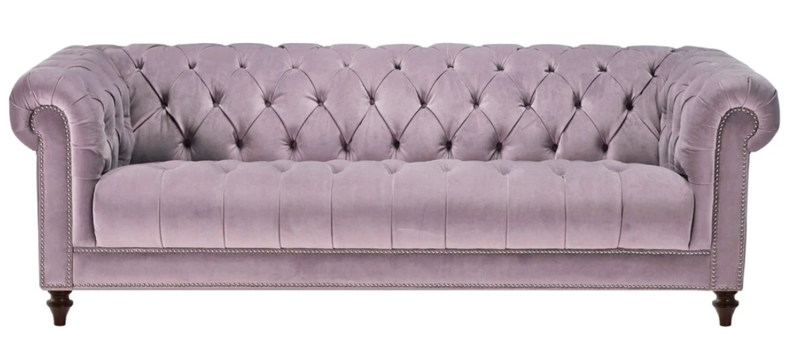 Paarse driezits stoffen Chesterfield-designbanken gestoffeerde banken origineel fluweel
