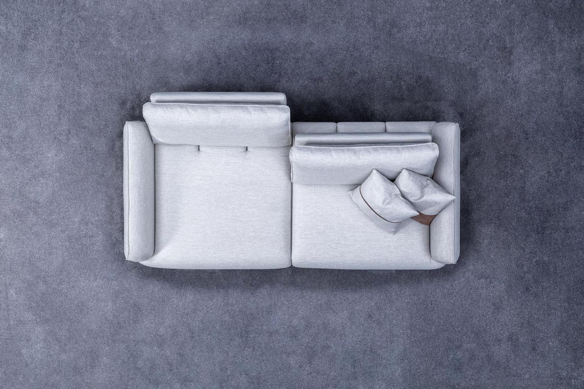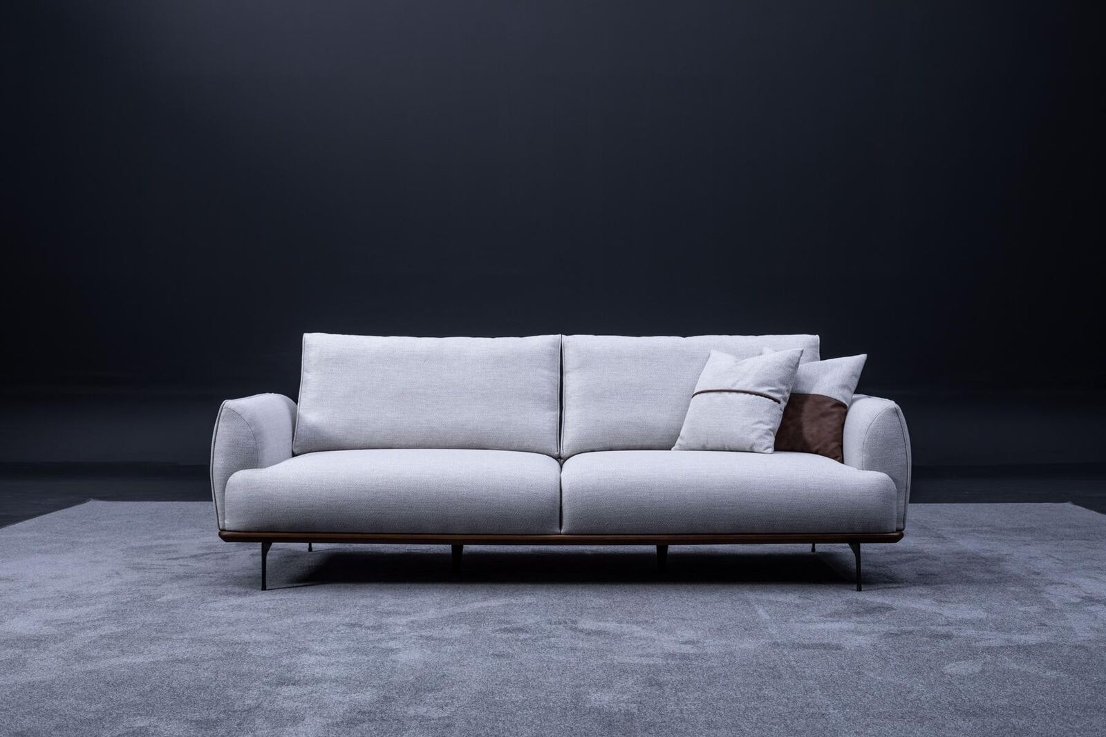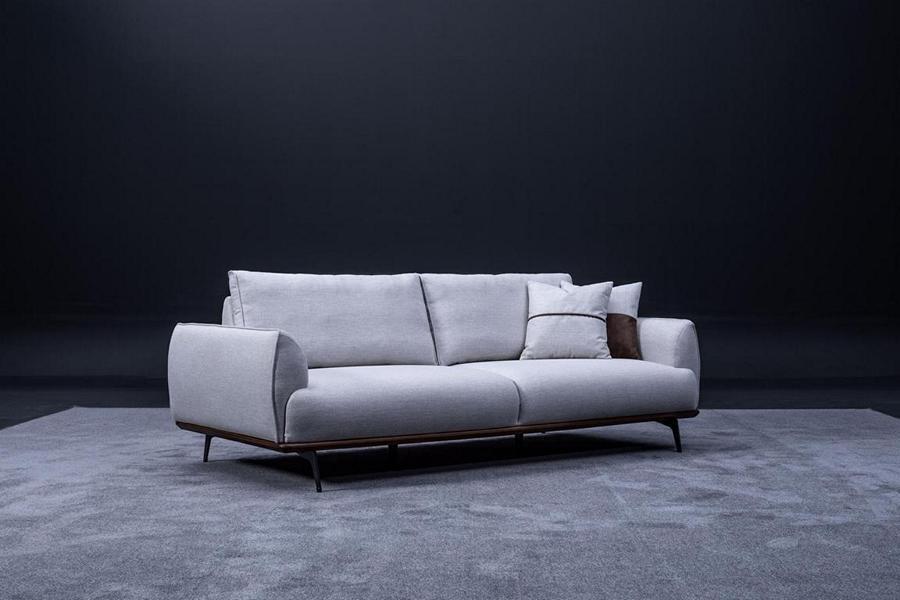 Luxe designerbank, driezits textiel meubel, woonkamerbank, nieuwe designbank.