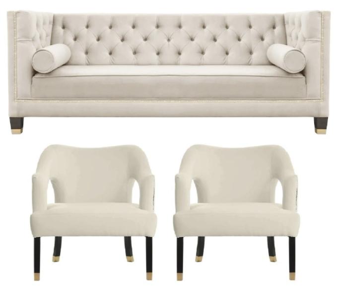 Beige Chesterfield Bank Fluwelen Sofa Sofaset banken Sofa’s Bekleding 311 Zitplaatsen