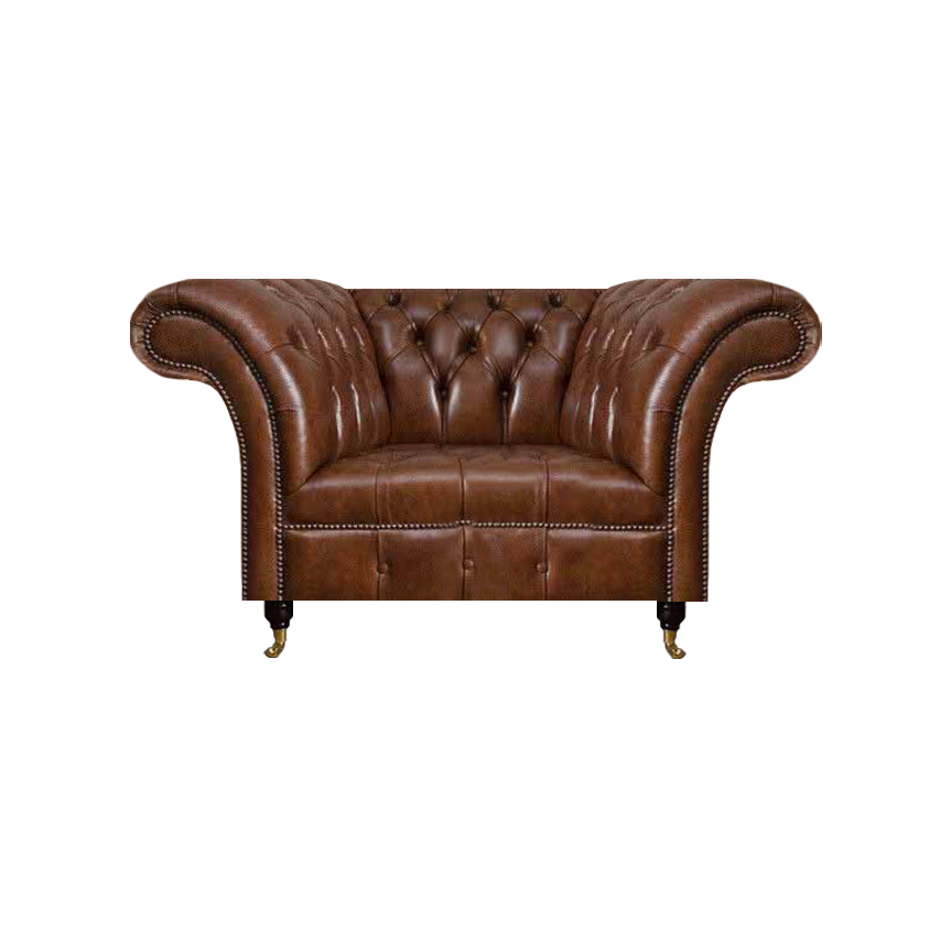 Chesterfield bruine lederen fauteuil woonkamer kunstlederen eenzitter meubel.