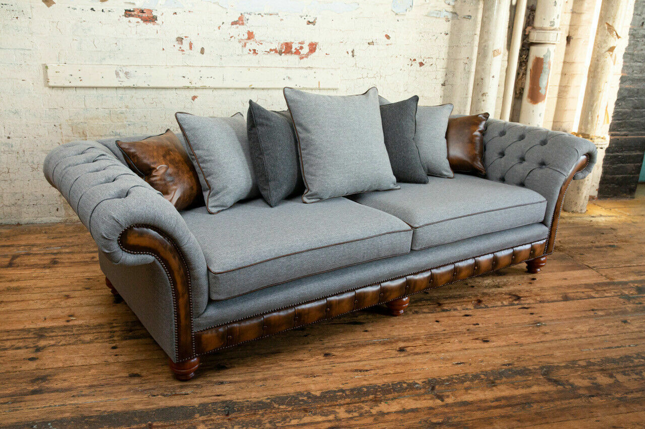 Klassiek Chesterfield Design Bankstel 4-Zitter Bank Bekleding Luxe Textiel Bankstellen