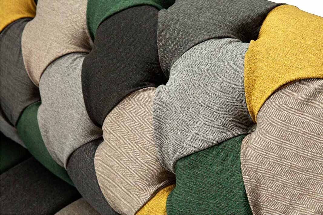 Klassieke, Chesterfield-stoffenbank, 3-zits bank, zitbanken, gestoffeerde banken