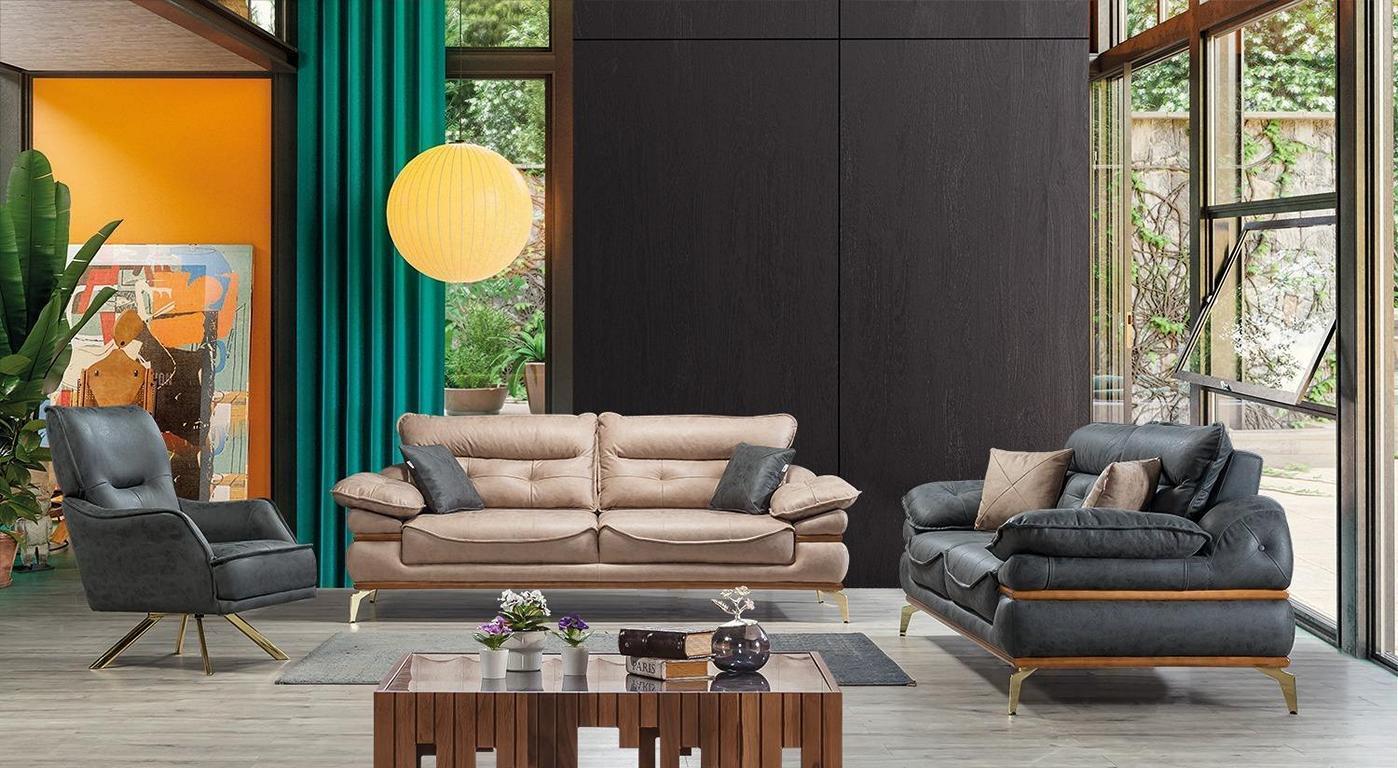 Modern bruin bankstel in de woonkamer Exclusieve 3-zitsbank