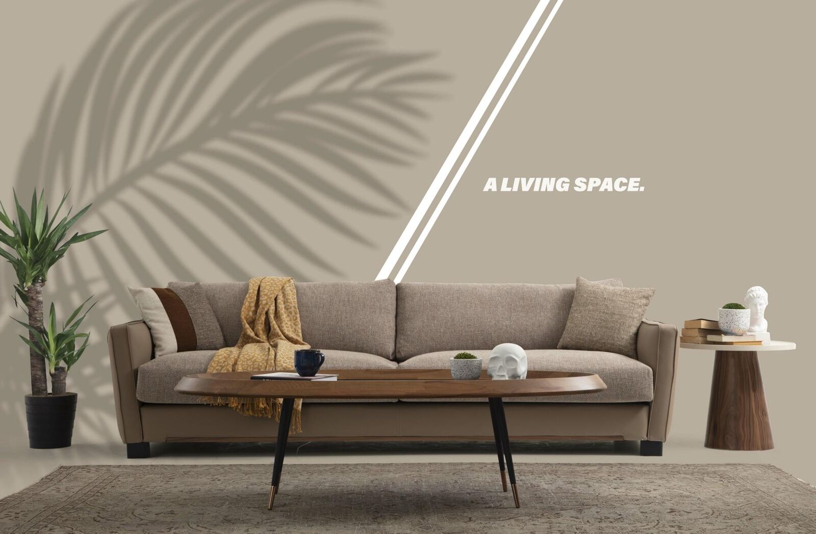 Bank 4-zits Vierzits Modern Stof Beige Bankstellen Design Woonkamer