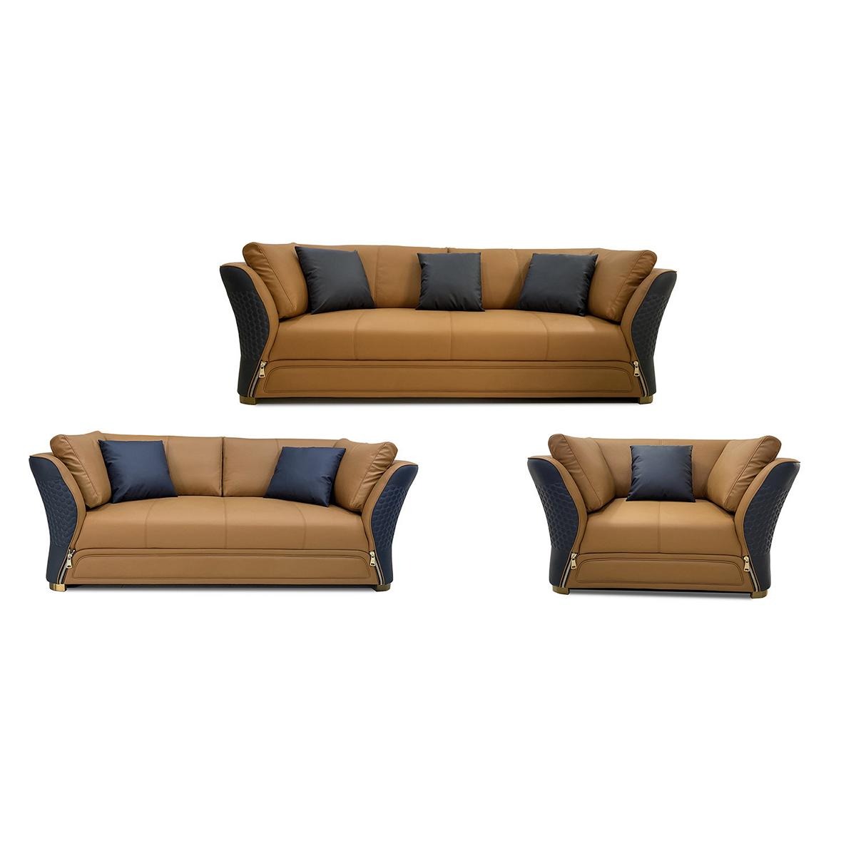 Zitbank 3+2+1-zits Ontwerp Beklede Bankstellen Leer Relax Moderne Nieuwe Bruin
