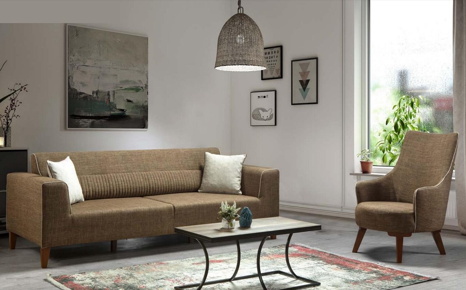 Sofaset 3+1 zitplaatsen gestoffeerde bank gestoffeerde meubels bruine stof