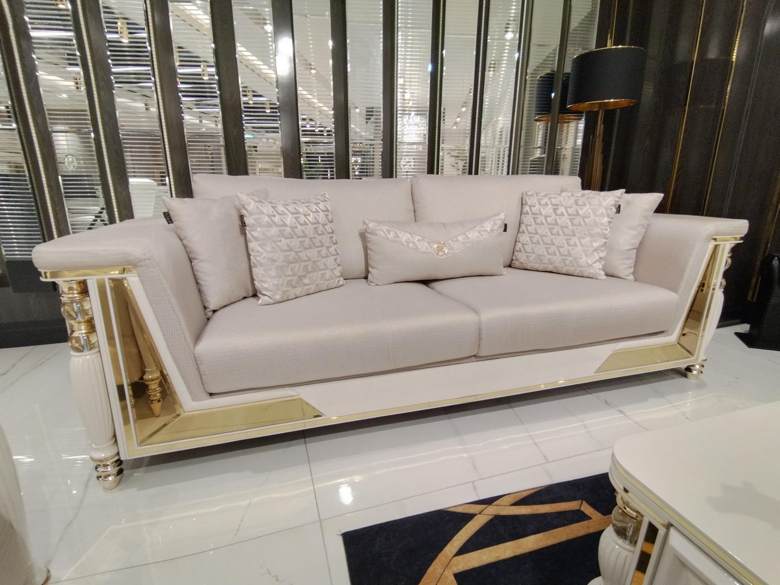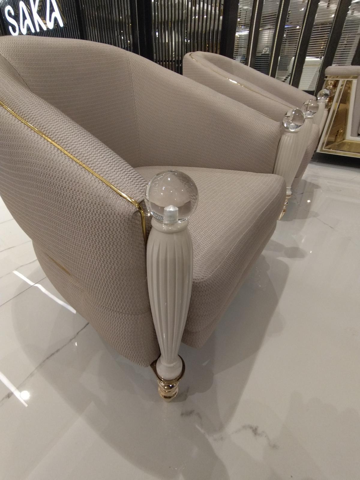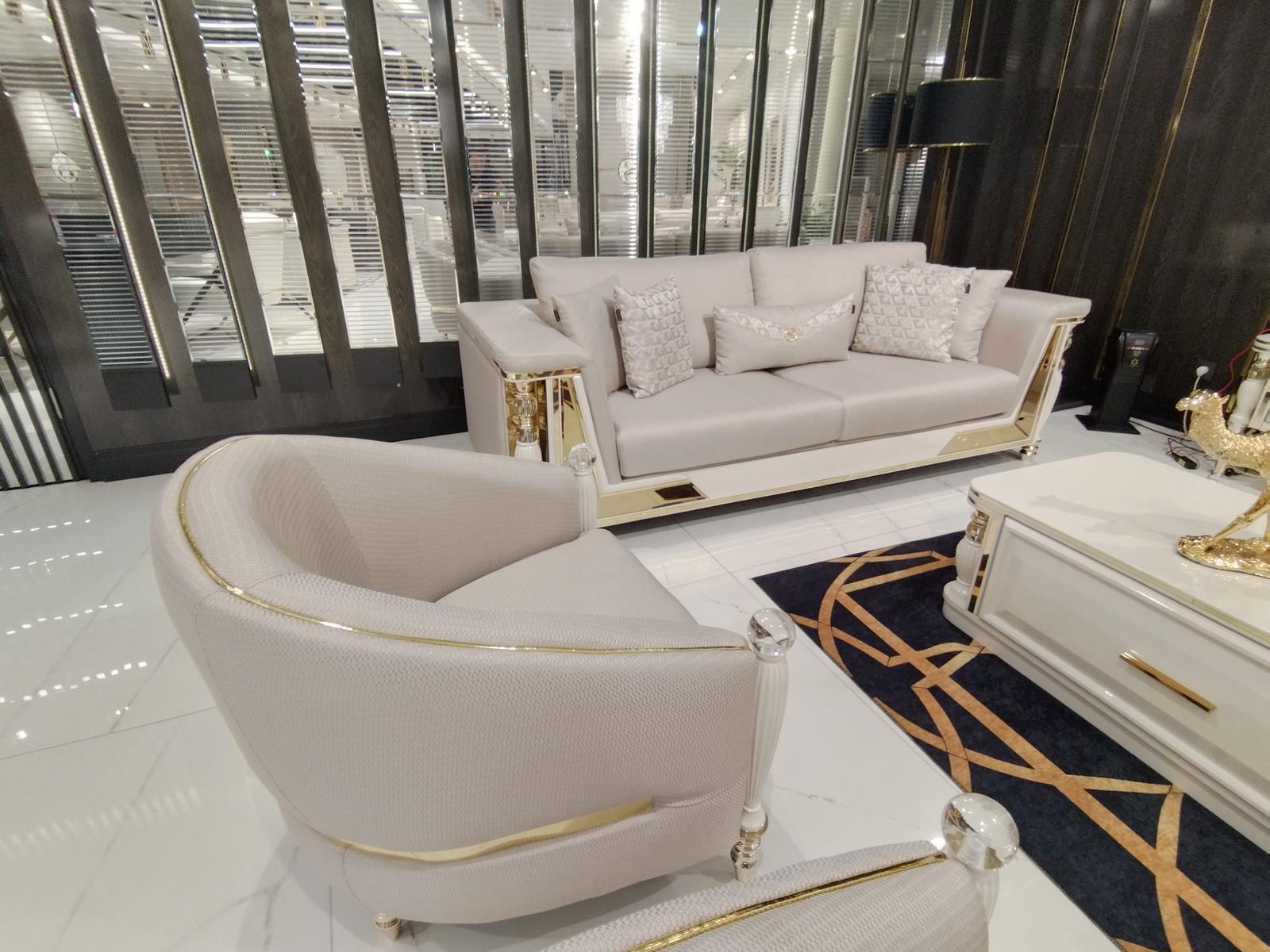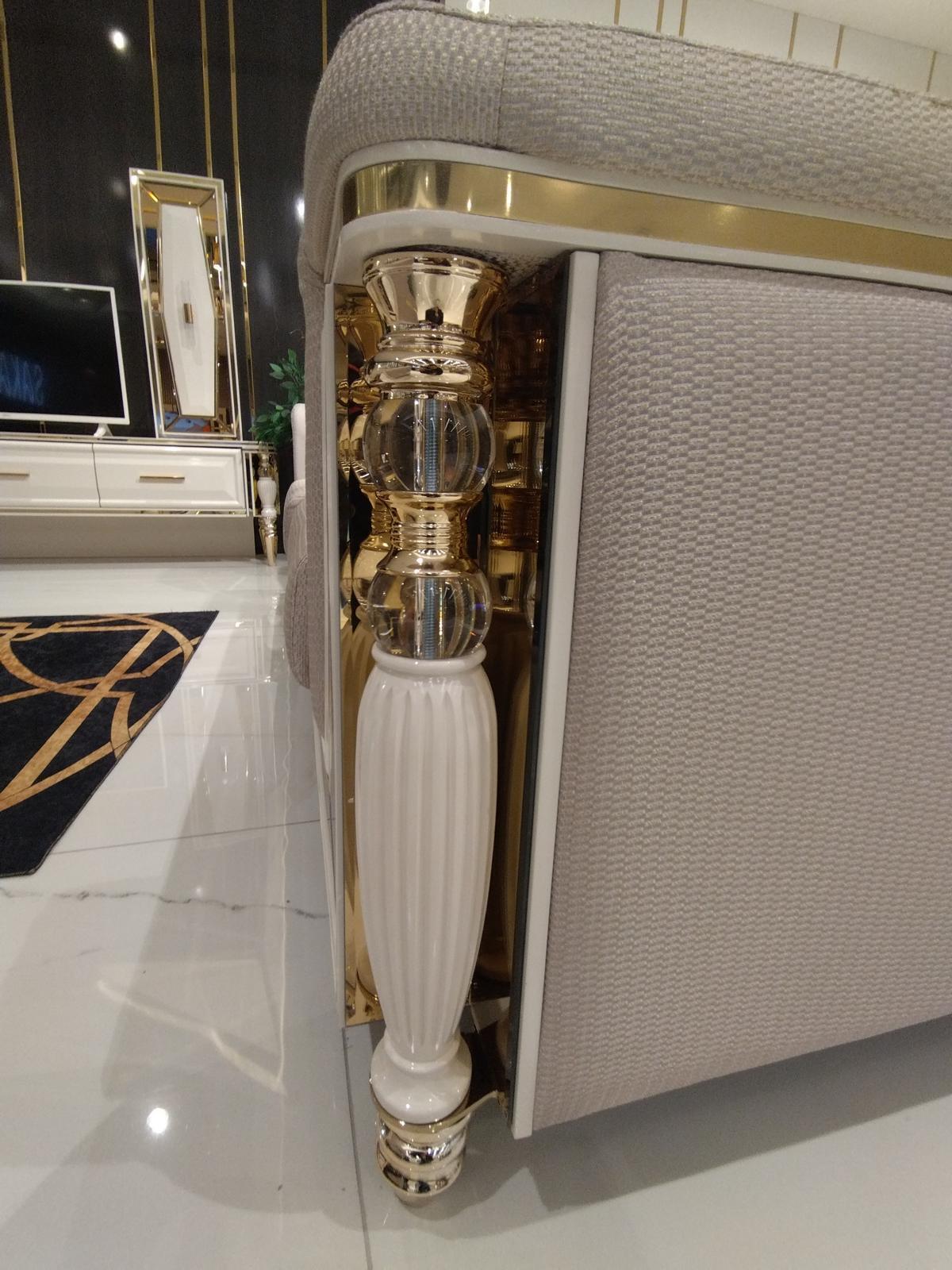 Het Luxe bankstel 3+3+1+1 zitsbank fauteuil JV meubilair Moderne meubelset 4-delig Nieuw is een stijlvolle en moderne meubelset die perfect is voor elke woonkamer. Dit set bevat twee 3-zitsbanken en twee comfortabele fauteuils, allemaal gemaakt van hoogwaardig hout en textiel in de kleur zoals afgebeeld. De banken en fauteuils hebben de volgende afmetingen: de 3-zitsbank is ongeveer 234 x 96 x 72 cm en de fauteuil is ongeveer 76 x 60 x 80 cm. Met deze meubelset voeg je niet alleen elegantie toe aan je interieur, maar ook comfort en duurzaamheid.