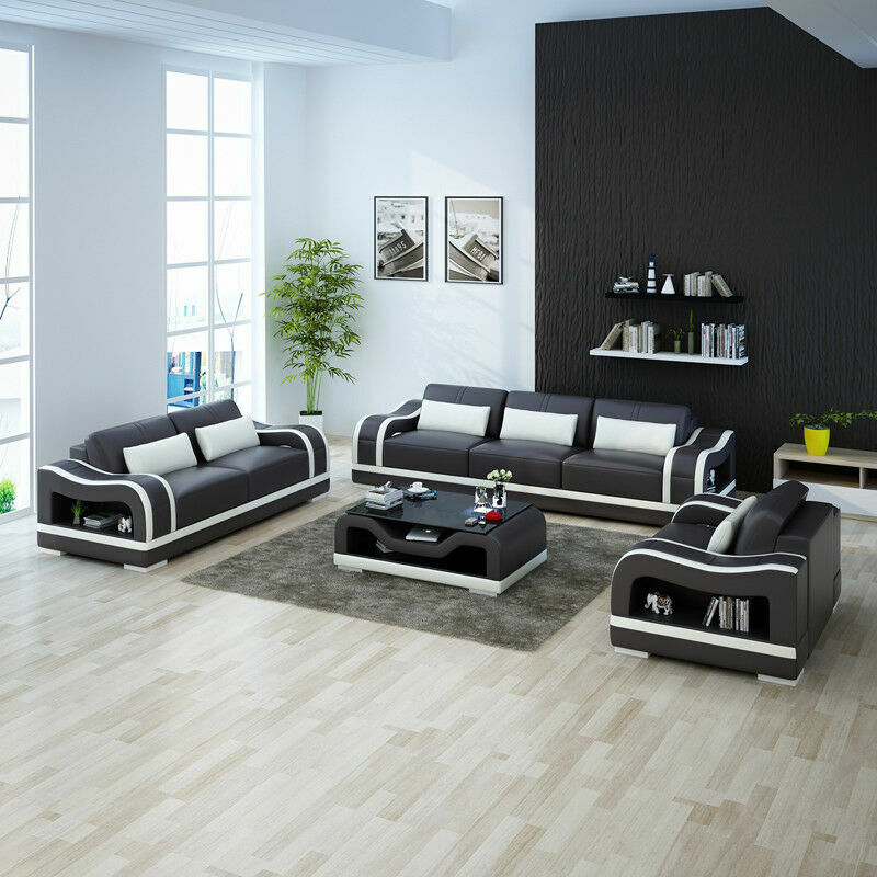 Ingericht met stijl en comfort in gedachten, biedt de 'Leren bank bank woonlandschap 3+2+1 zits set modern ontwerp bankstel G8030D' een luxueuze zitoplossing voor uw woonruimte. De set bestaat uit een 3-zitsbank, een 2-zitsbank en een 1-zitsbank, allemaal met premium ledervezelstof bekleding (70% leder/30% polyester). Met afmetingen variërend van ca. 225 x 88 x 95 cm voor de 3-zitsbank tot 108 x 88 x 95 cm voor de 1-zitsbank, biedt deze set voldoende ruimte om te ontspannen en te genieten van gezellige momenten met familie en vrienden.