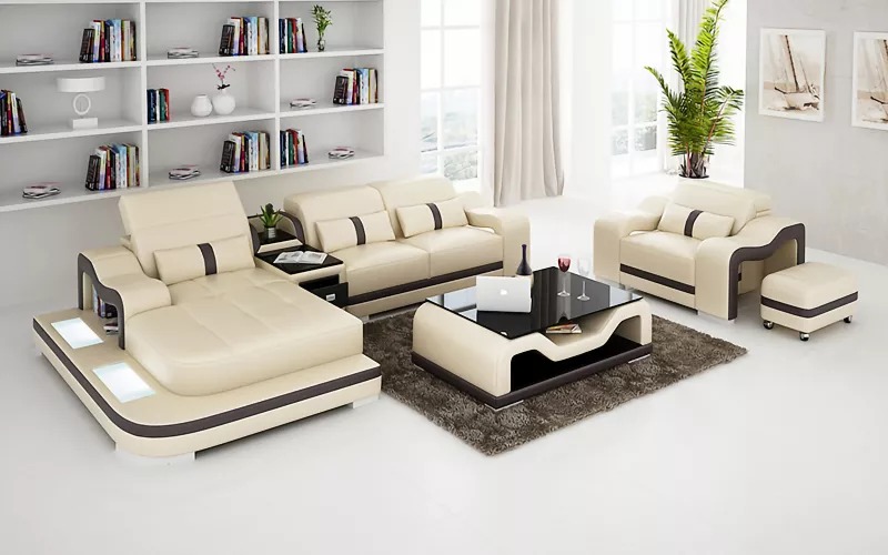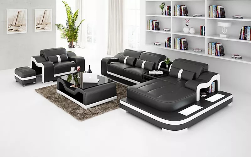 Moderne hoekbank L-vorm decoratieve fauteuil salontafel poef hoekbank gestoffeerd