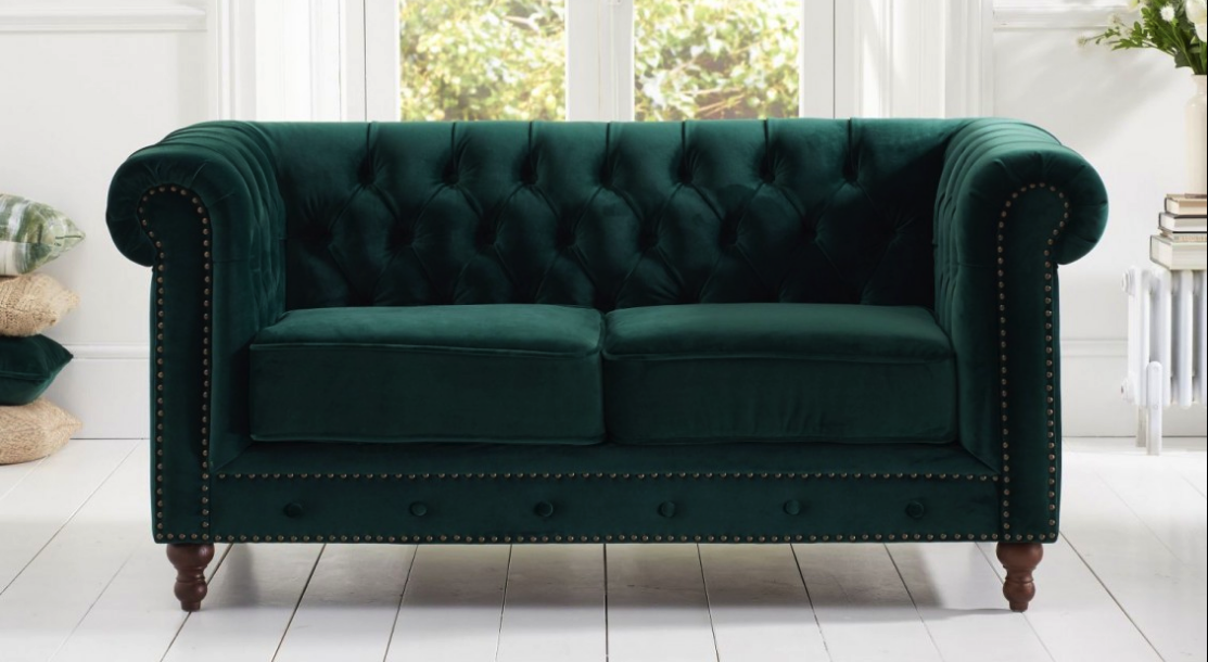 Britse Chesterfield Groene Driepersoons Bank - Luxe Leren Meubels