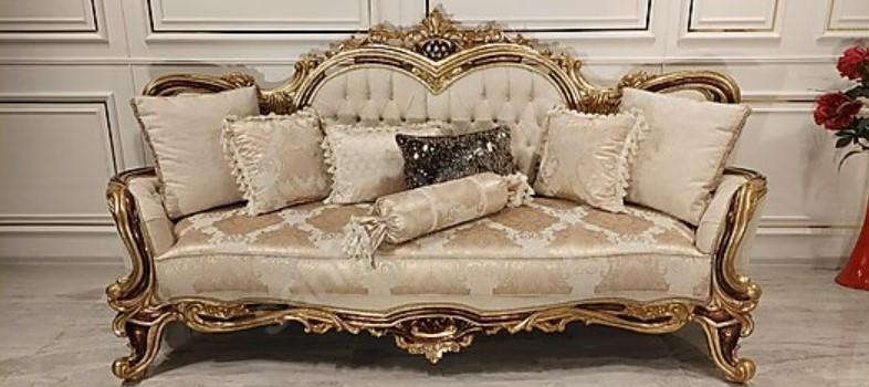 Chesterfield barok driezitsbank meubel bank bank stof beige