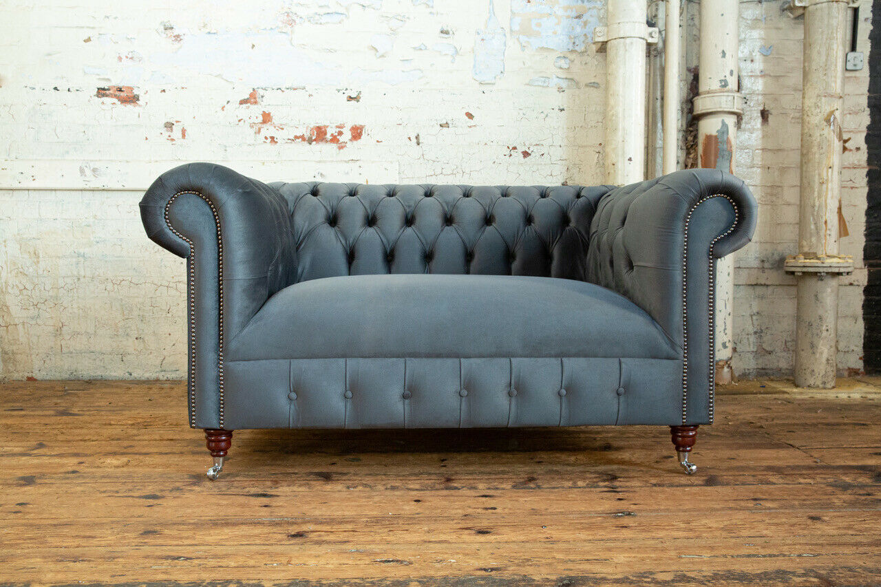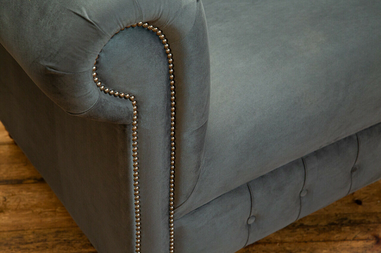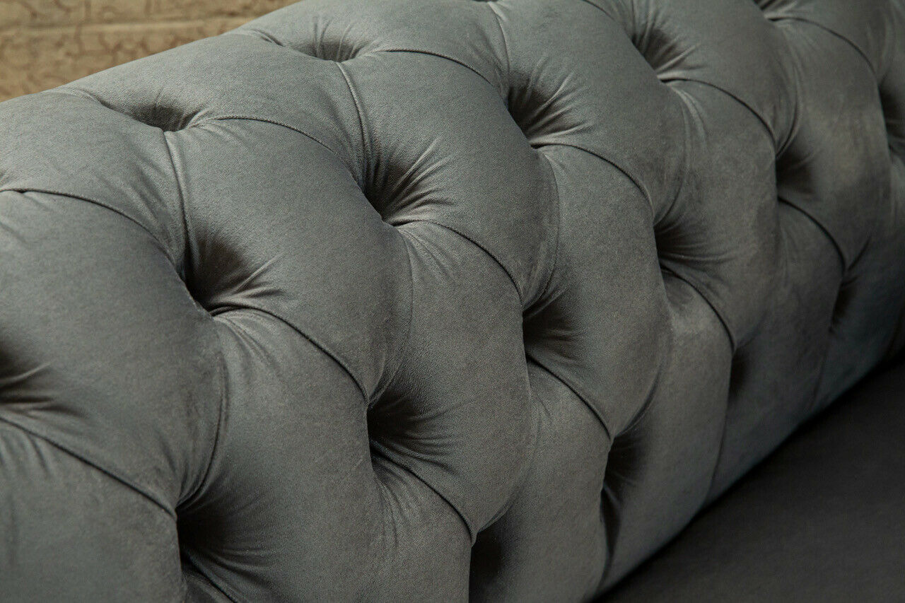Chesterfield Design Bank 2-zits Sofa Bekleding Zit Set Leder Textiel Grijs