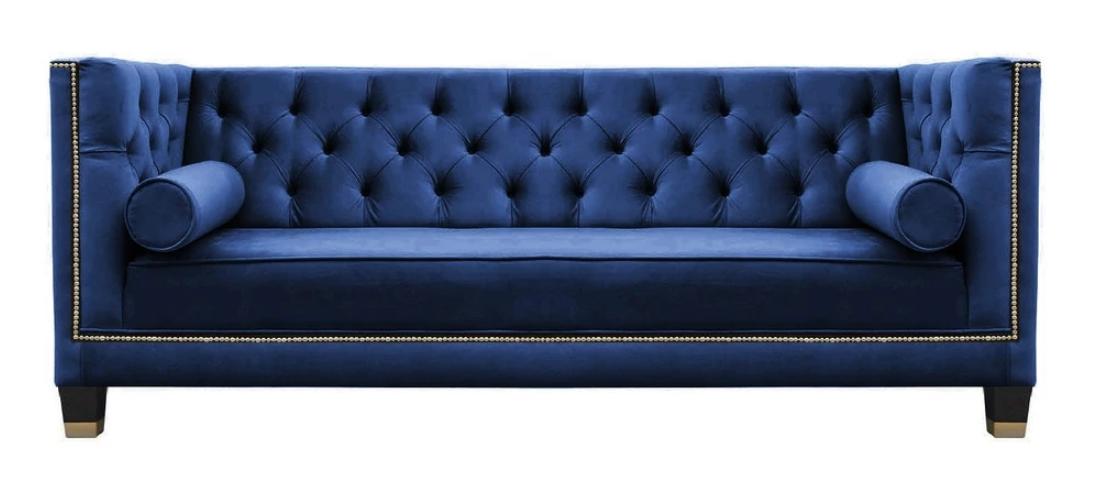 Blauwe Chesterfield driezits stoffen woonkamer ontwerpbanken