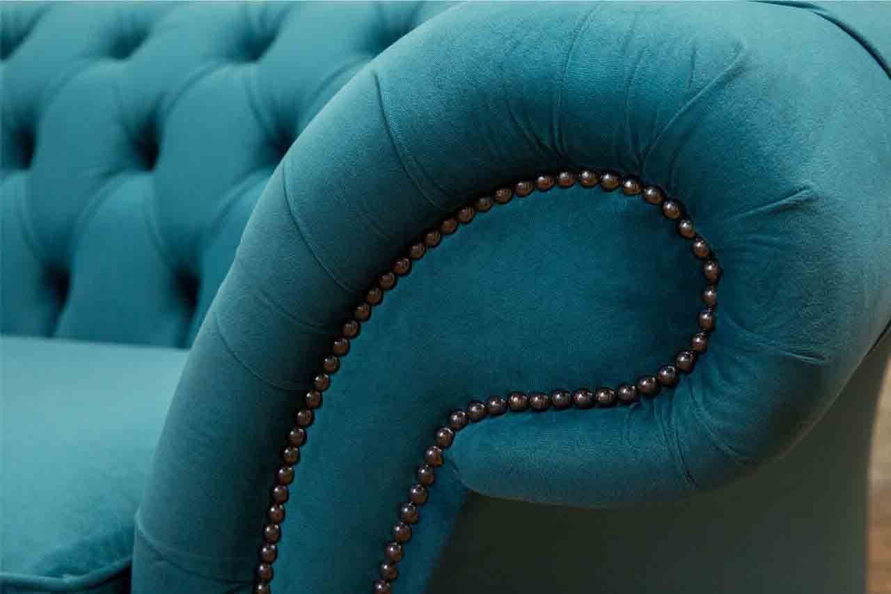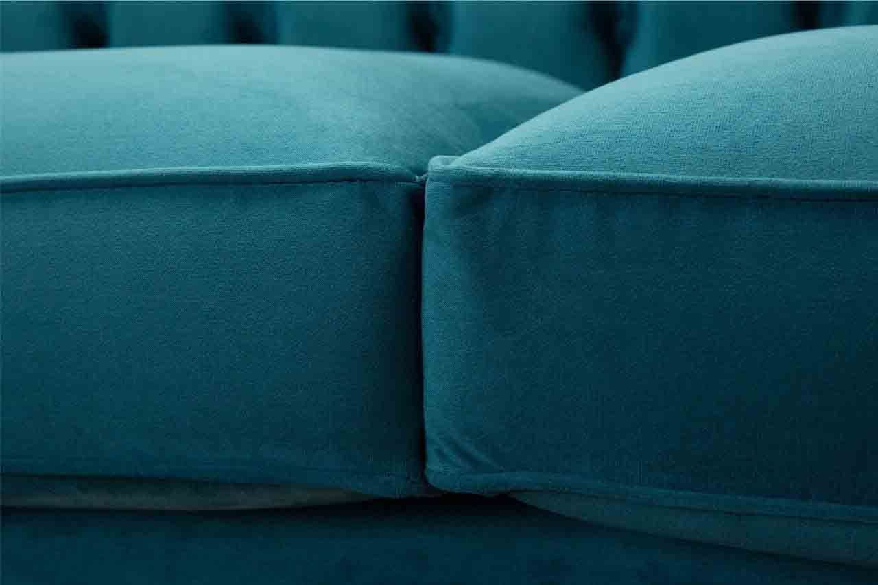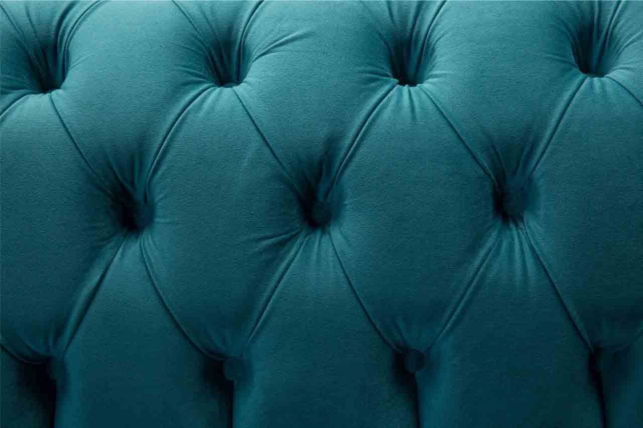 Chesterfield driepersoons blauw stoffen woonkamer design bankstel