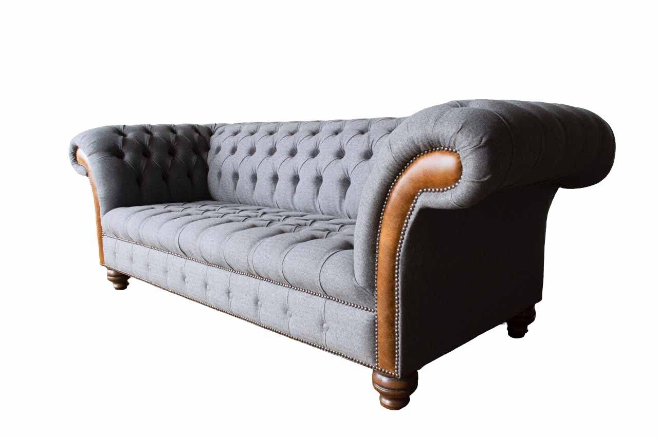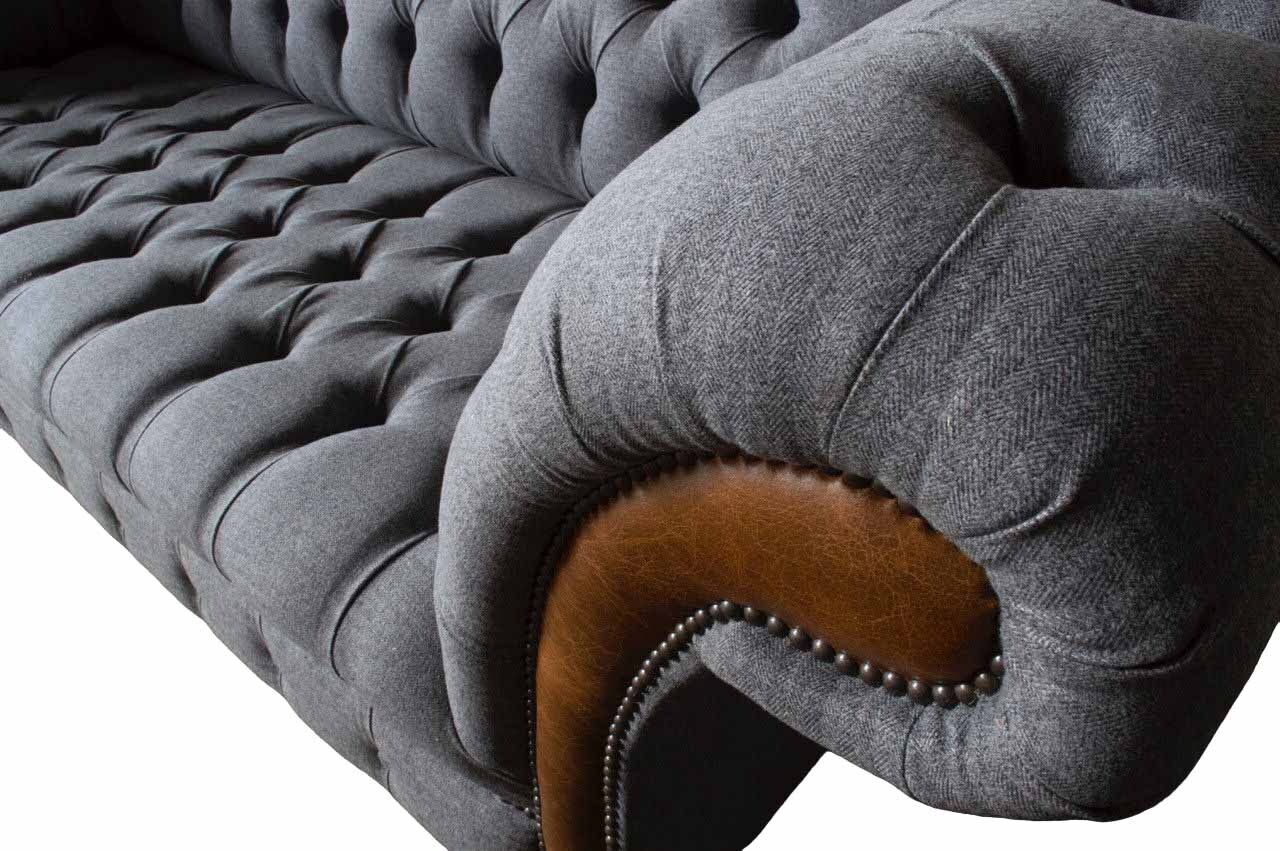 Chesterfield stoffen sofa luxe sofa gestoffeerde bank zit grijs textiel