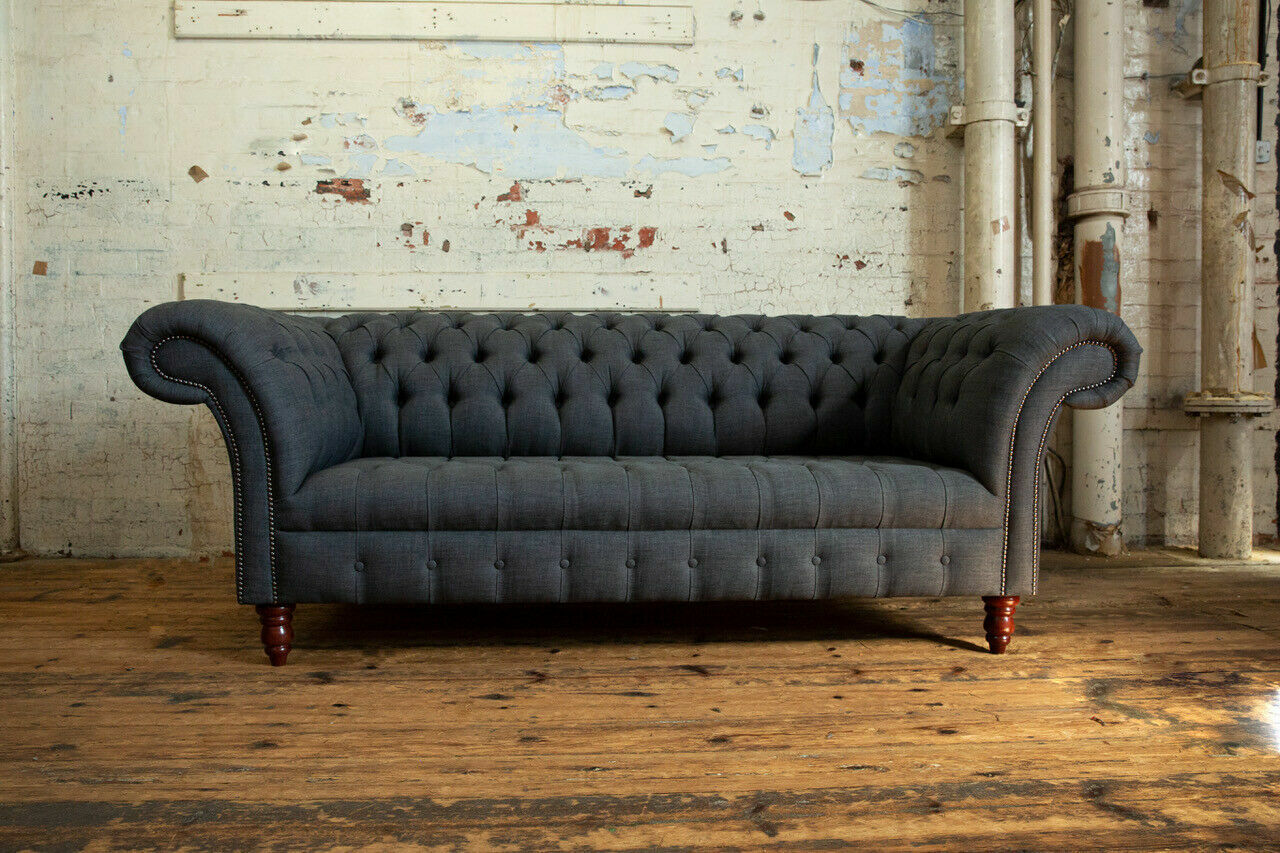 Grijze textielbank Grijze Chesterfield-driepersoons luxe woonkamerbank