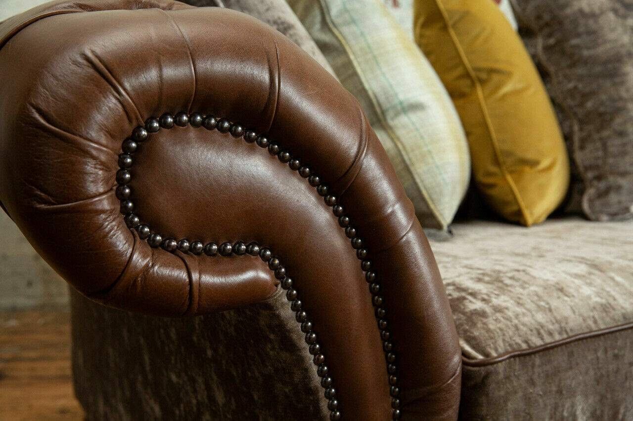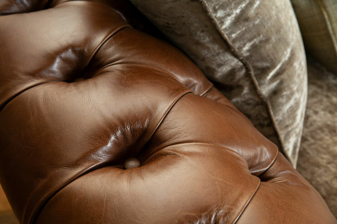 Klassieke Chesterfield bank 4-zits banken banken leer bruin design bekleding