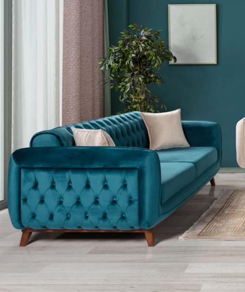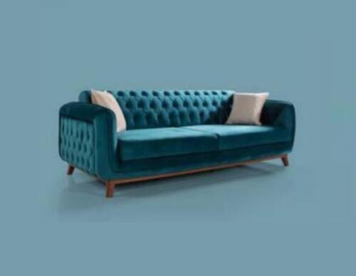 Designbank 3-zits bank Driepersoonsbekleding Stof Turkoois Zitkussen