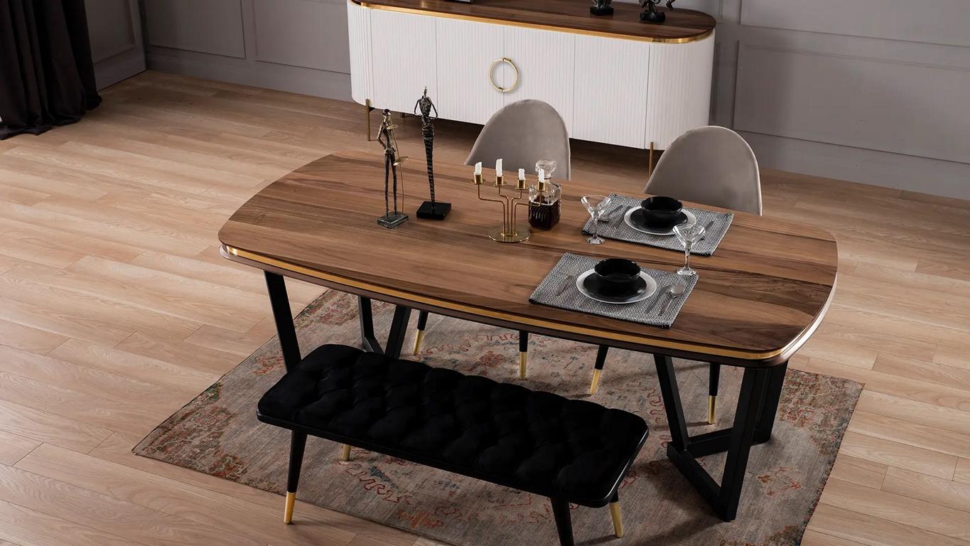 Met zijn ruime en stevige constructie is de 'Eetkamer set bestaande uit eettafel+4x stoelen en bank bruin kleur 6-delig' ideaal voor zowel dagelijkse maaltijden als speciale gelegenheden. De combinatie van hoogwaardige materialen zorgt voor een lange levensduur, terwijl het stijlvolle design naadloos aansluit bij verschillende interieurstijlen, van modern tot klassiek. Gebruik deze set voor familiediners, spelletjesavonden of als een centrale plek voor huiswerk en knutselen. Het elegante ontwerp en de praktische opstelling zorgen ervoor dat deze eetkamer set niet alleen een plek om te eten is, maar ook een centraal punt in uw huis waar herinneringen worden gemaakt. Voeg deze prachtige set toe aan uw interieur en geniet van de perfecte balans tussen comfort, stijl en functionaliteit.
