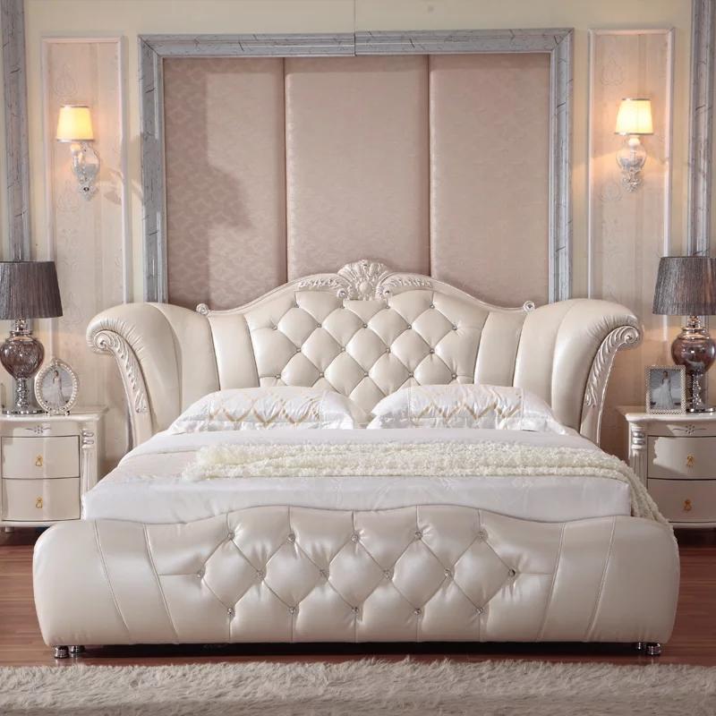 Ontwerp Chesterfield Bed Textiel Velours Bekleding Hotel Lederen Bedden Slaapkamer