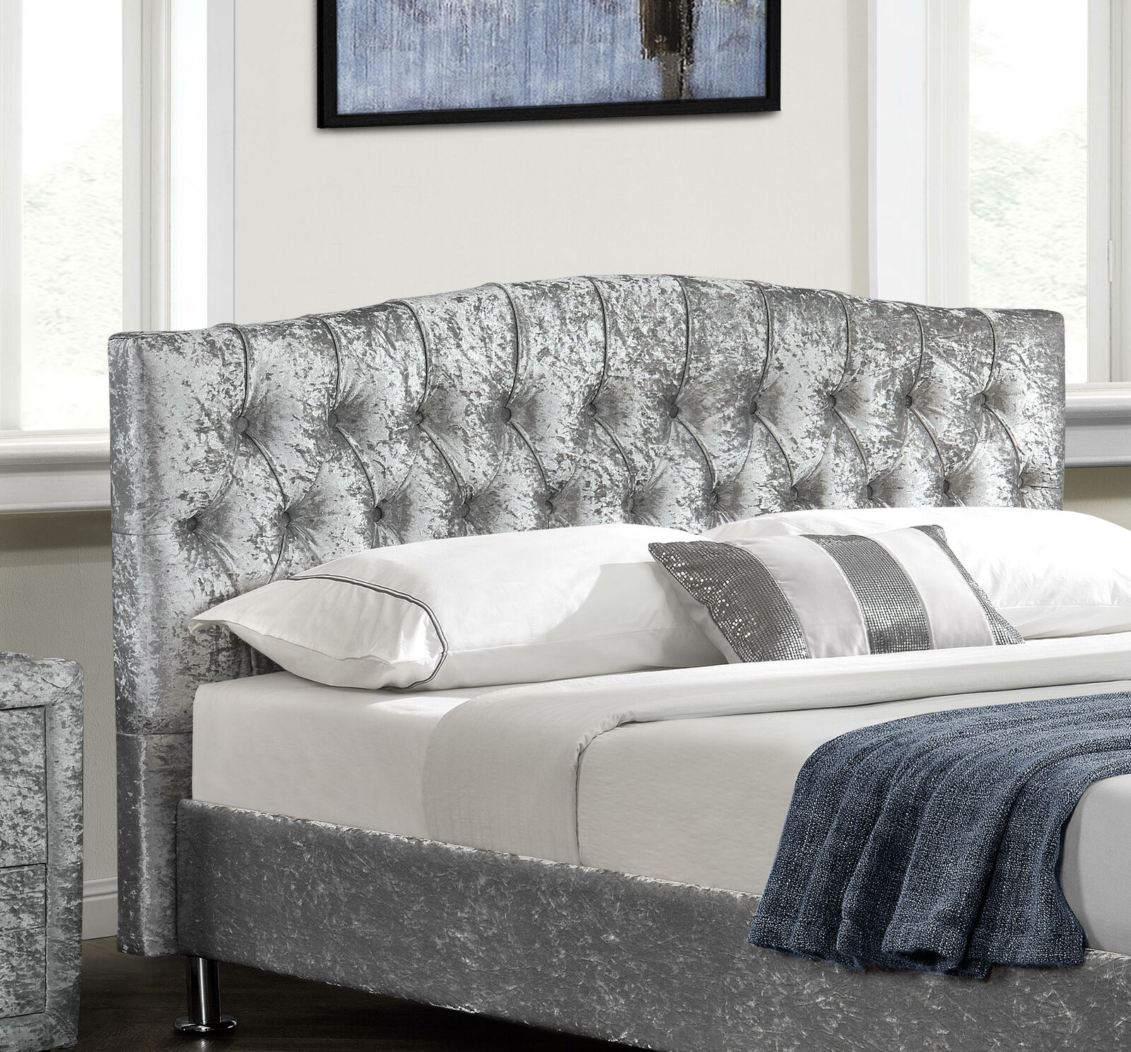 Beklede Chesterfield grijze luxe tweepersoonsbed slaapkamer ontwerper bedden