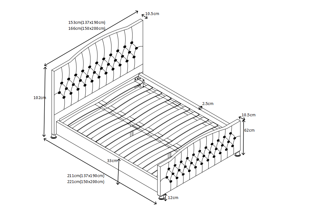 In dit Italiaans Rundleer tweepersoonsbed is elk detail zorgvuldig ontworpen voor duurzaamheid en comfort. Het binnenframe van echt hout en de veringskern zorgen voor stevige ondersteuning, terwijl de mogelijkheid om te upgraden naar Echte Swarovski Kristalstenen voor een luxueuze uitstraling zorgt. Dit bed is niet alleen een elegante toevoeging aan uw slaapkamer, maar biedt ook een comfortabele en stijlvolle omgeving om heerlijk in weg te dromen na een lange dag. Creëer een luxe slaapervaring met dit luxe Chesterfield tweepersoonsbed dat vakmanschap en klasse combineert.