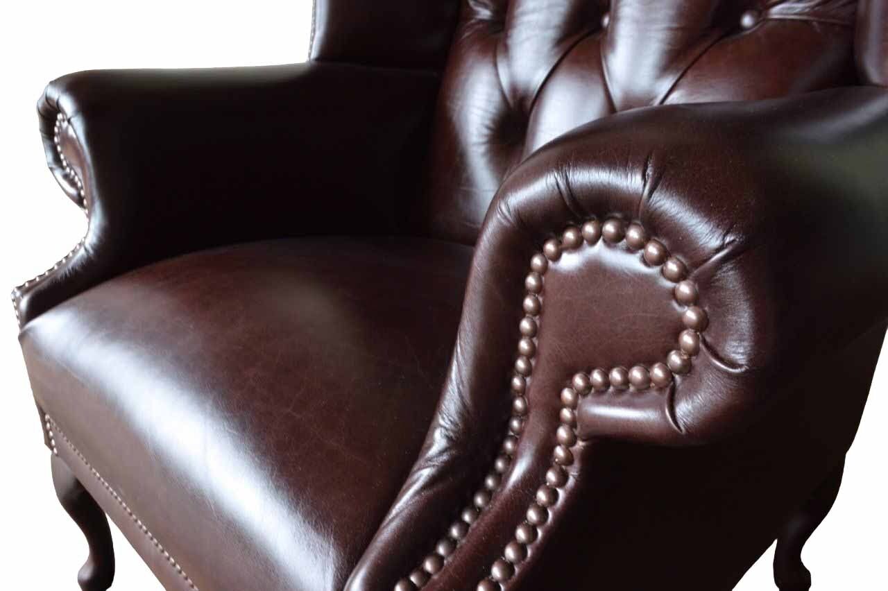 Fauteuil 1 zits Bruin Woonkamer Leer Design Chesterfield Oorfauteuil biedt een luxueuze en stijlvolle toevoeging aan elke woonkamer. Met afmetingen van ongeveer 80 x 77 x 133 cm is deze fauteuil perfect voor ontspanning en comfort. Het hoogwaardige echt rundleder uit Italië met een dikte tot ca. 2,50mm zorgt voor duurzaamheid en een verfijnde uitstraling. De Chesterfield stijl voegt een vleugje elegantie toe aan elke ruimte, terwijl de oorfauteuil voldoende steun en comfort biedt met een zithoogte van circa 42 cm en zitdiepte van ongeveer 50 cm.