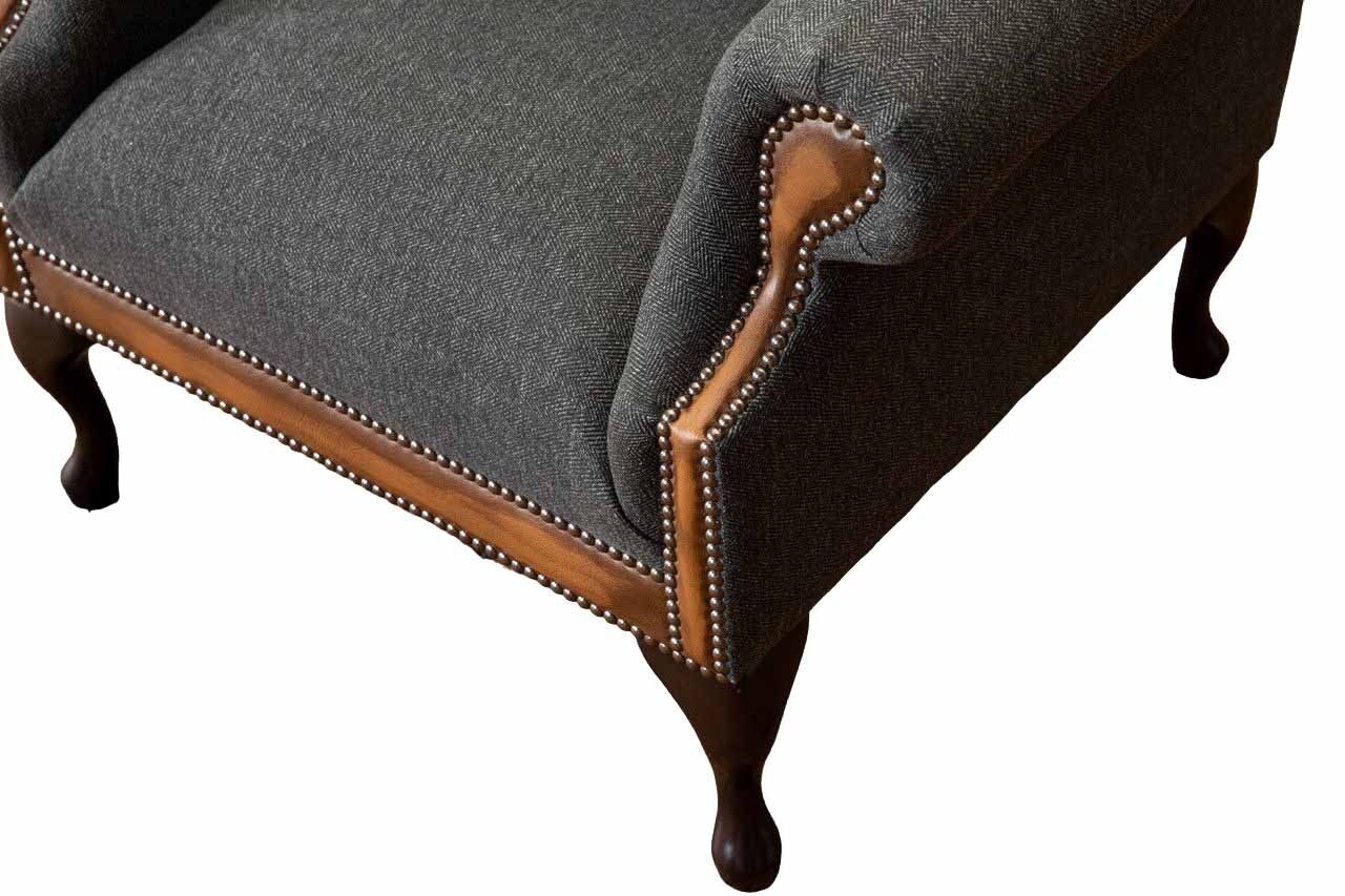 Chesterfield fauteuil Grijs Woonkamer Klassiek textiel Oorfauteuil Meubels