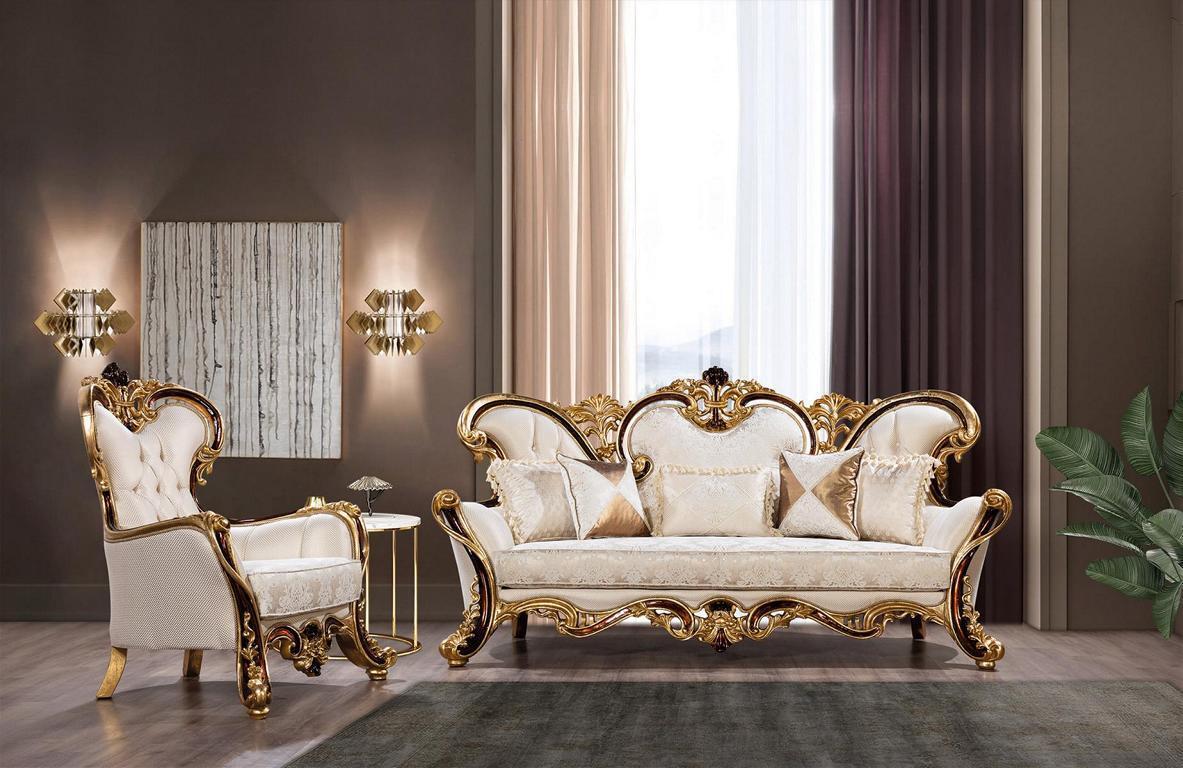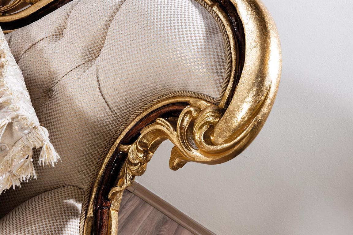 Luxe bankstel Barok Rococo bankstel 3+3+1+1 salontafel brengt een vleugje klassieke elegantie en comfort in uw interieur. Dit prachtige bankstel bestaat uit twee 3-zits banken, twee fauteuils en een salontafel, allemaal in een luxueuze Barok Rococo-stijl. Met afmetingen die zorgen voor ruime zitplaatsen en een uitnodigende uitstraling, is dit bankstel perfect voor formele ontvangstruimtes of chique woonkamers. De houten frames zorgen voor duurzaamheid en stabiliteit, terwijl het zachte textiel zorgt voor ultiem comfort.