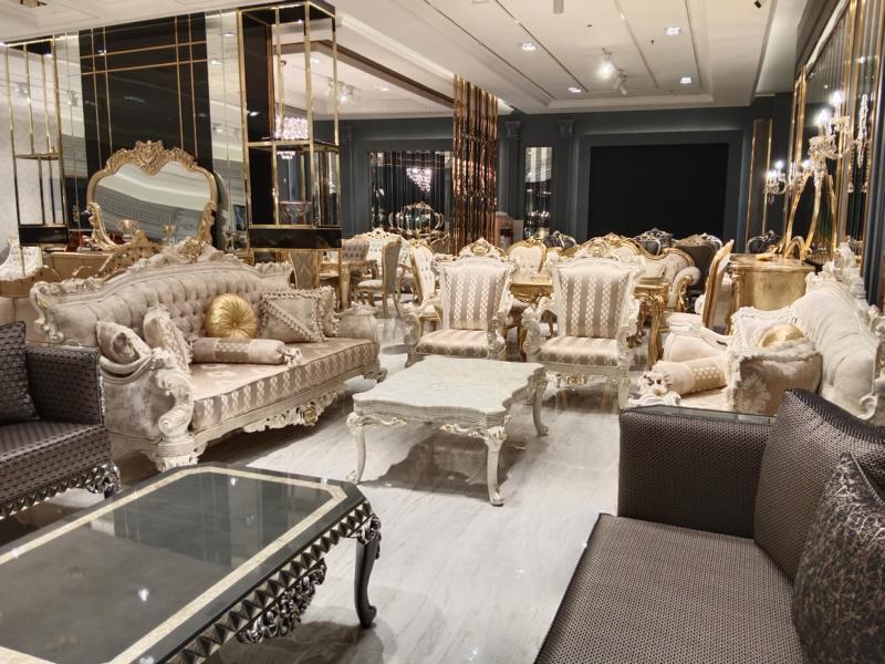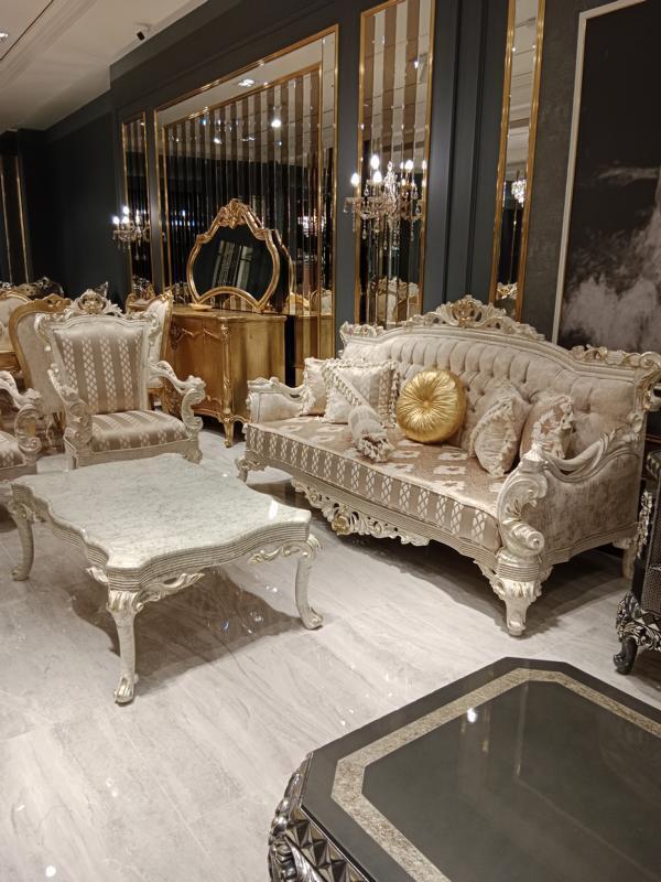 Modern woonkamer set met twee stijlvolle set 3-zitsbanken en een ontwerpersfauteuil