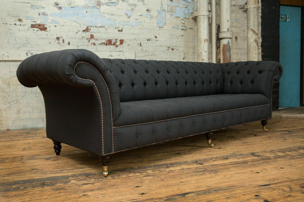 Zwarte Chesterfield Textiel Lederen Bank Bank Kussen Groot Zitkussen xxl 265cm