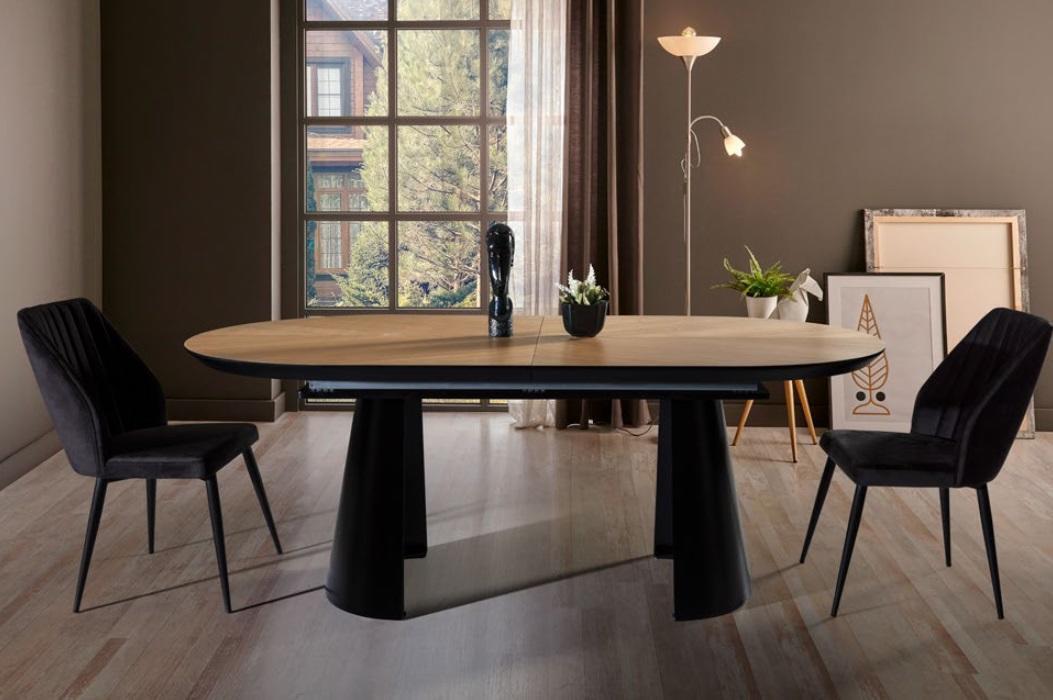 De ovale uitschuifbare eettafel is een stijlvolle toevoeging aan elke keuken of eetkamer. Met afmetingen van ca. 206 cm (L) x 103 cm (B) x 79 cm (H), biedt deze tafel ruimte voor gezellige maaltijden met familie en vrienden. De uittrekbare functie, met een uitbreiding van + 50 cm aan elke kant, zorgt ervoor dat deze tafel zich aan elke gelegenheid kan aanpassen. Gemaakt van hoogwaardig MDF hout en metaal, straalt deze eettafel duurzaamheid en elegantie uit. De natuurlijke bruine kleur voegt warmte en charme toe aan elke ruimte.