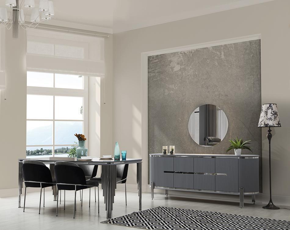 Grijze eetkamertafel Luxe eetgroep Eettafel Stoelen Dressoir 6-delig