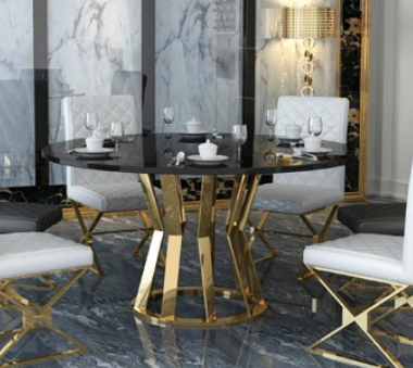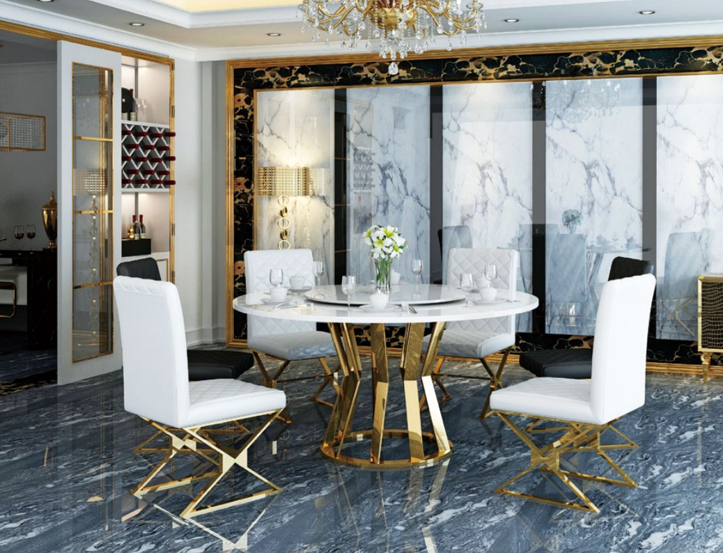 Eetkamer set Moderne eettafel + 6 leunstoelen Metaal Leer Set is een prachtige toevoeging aan jouw eetkamer. Deze set bestaat uit een moderne eettafel en 6 leunstoelen, perfect voor gezellige diners met familie en vrienden. De eettafel heeft een indrukwekkende afmeting van ca. 130 x 80 x 130 cm, terwijl de stoelen comfortabel en stijlvol zijn met een afmeting van ca. 50 x 92 x 43 cm. De gebruikte materialen, waaronder kunstleer, hout en RVS met een marmeren imitatieplaat, zorgen voor duurzaamheid en een luxueuze uitstraling. De set is beschikbaar in de afgebeelde kleur en kan op aanvraag in andere kleuren worden geleverd.