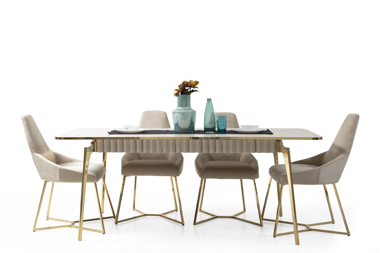 Stijlvolle eetkamerset luxeset ontwerptafel met 6 stoelen.