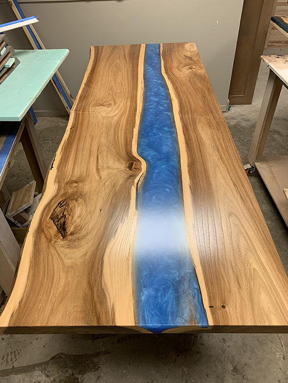 Eettafel tafels epoxyhars epoxytafel waterval echt hout massief meubilair