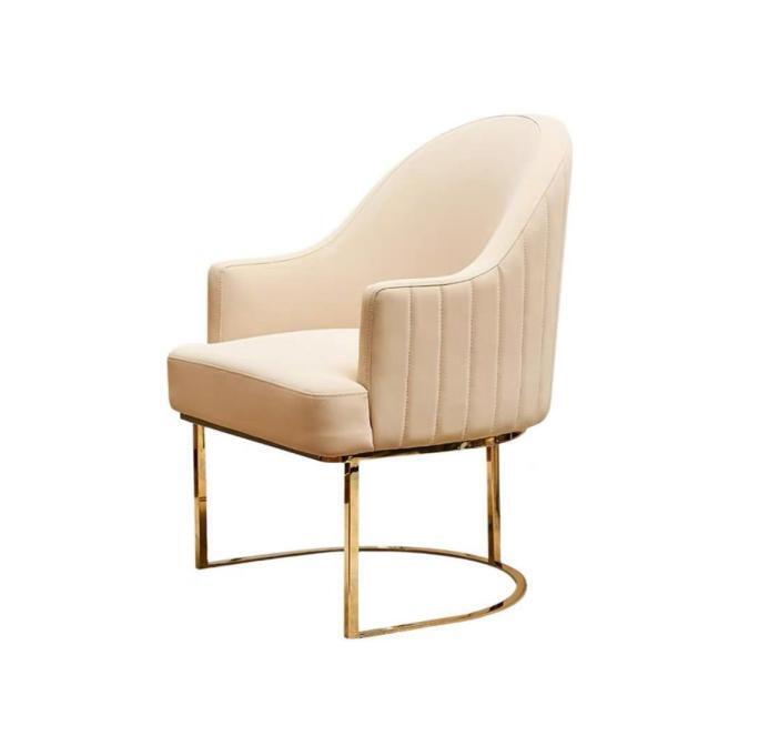 Beige eetkamerstoel, ontwerper met één zitplaats, textielmeubels, gestoffeerde stoelen