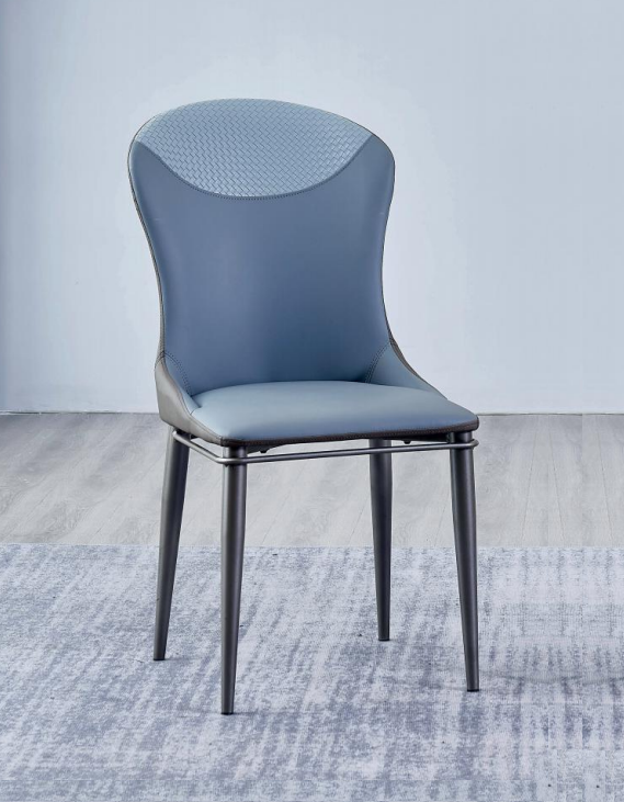 Blauwe eetkamerstoel zonder armleuningen Houten stoelen Designer leren stoelen