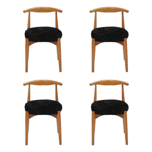 Moderne houten eetkamer met 4 bruine stoelen zonder armleuning met een gestoffeerde stoelontwerp.
